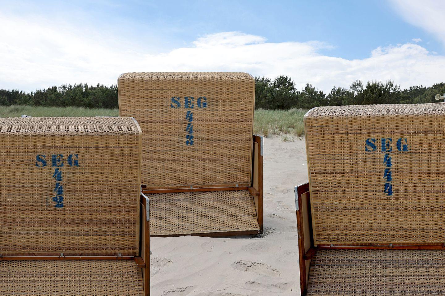 Kinderreisebett+Hochstuhl für gesamtes Haus, Strandkorb am Strand in der Saison