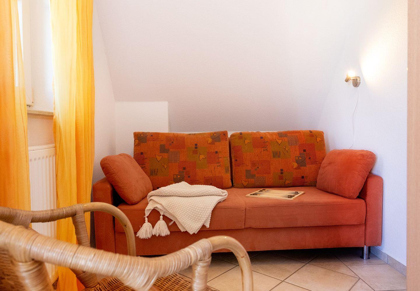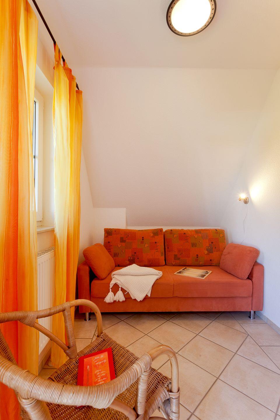 1. Obergeschosswohnung 58qm, WZ mit ausklappbarer Couch / Küche, Bad mit Dusche u. Waschmaschine
