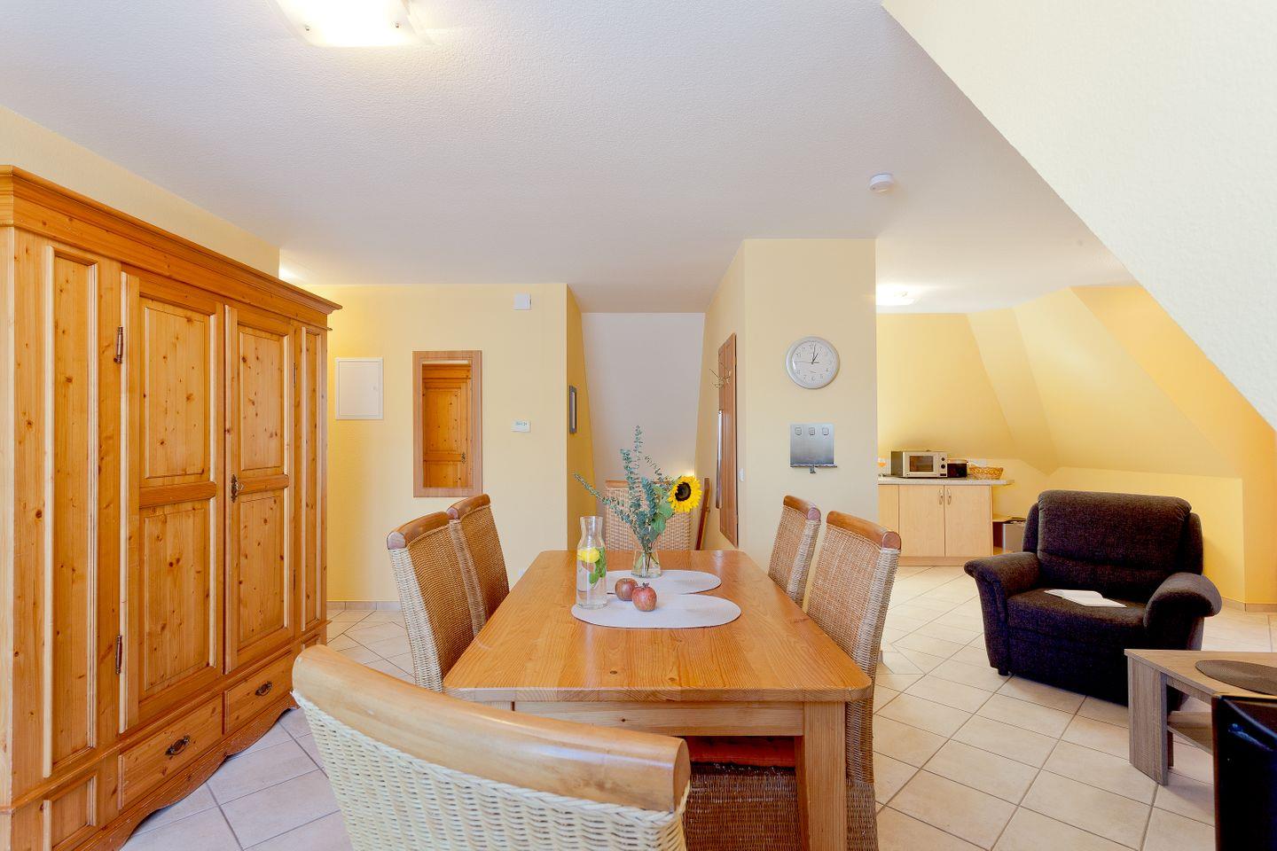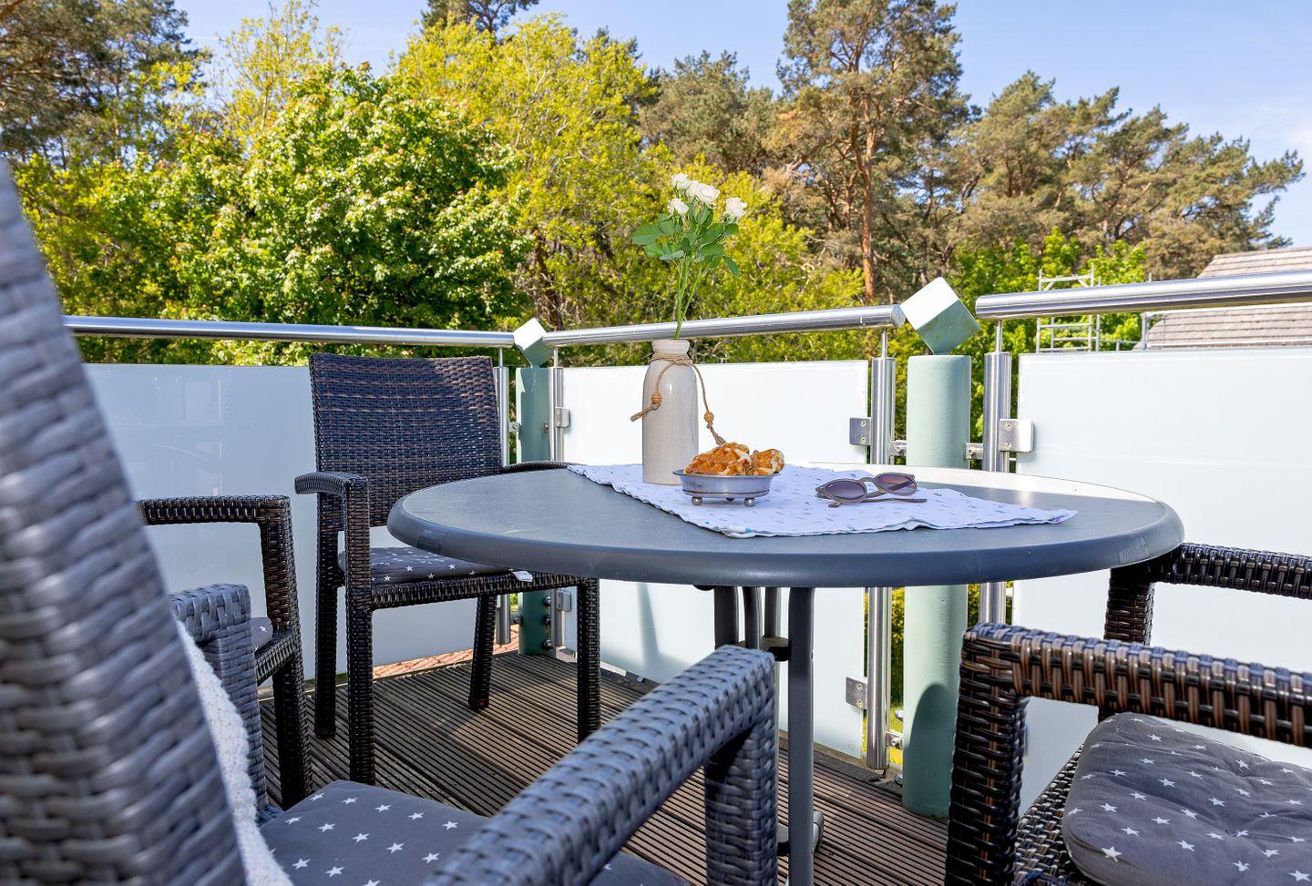 Ein besonderes Highlight der Unterkunft ist der großzügige Balkon, auf dem Sie die frische Ostseeluft und die Sonnenstrahlen genießen können. Für Familien mit Kindern gibt es auch einen Garten mit Spielmöglichkeiten. Ihre Kleinen sind herzlich willkommen und können sich im sicheren Außenbereich austoben. Zudem sind ein Babybett und ein Hochstuhl vorhanden.