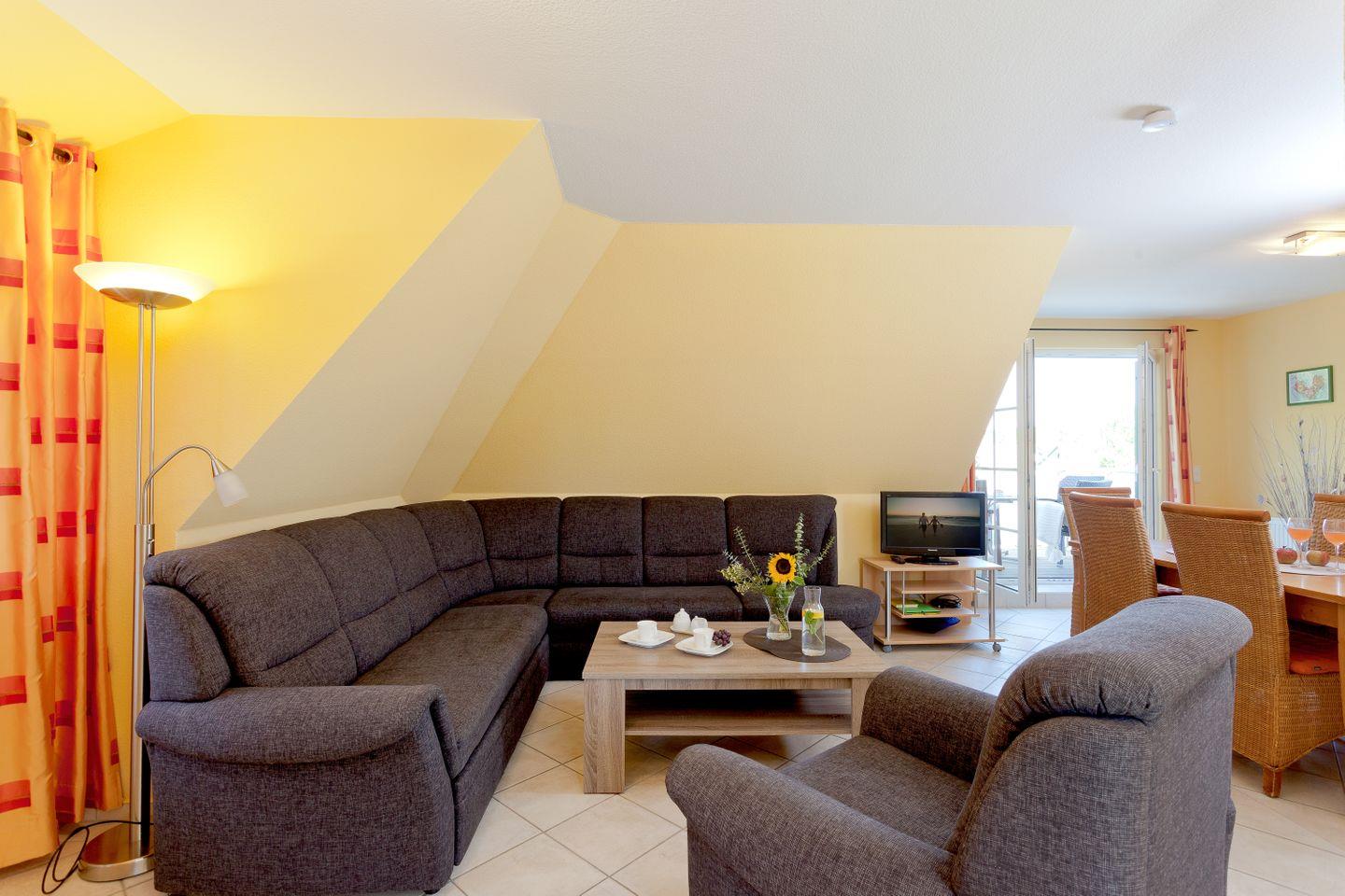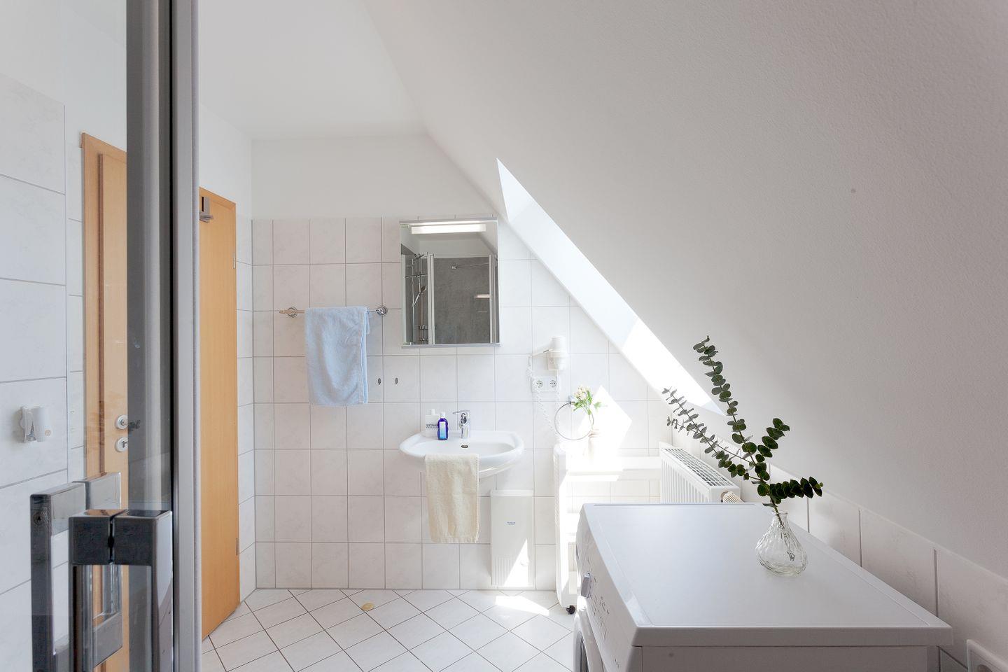 Dachgeschosswohnung 66qm, WZ mit ausklappbarer Couch / Küche, Bad mit Dusche u. Waschmaschine