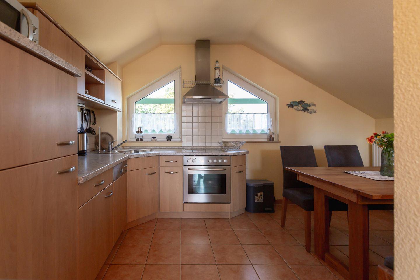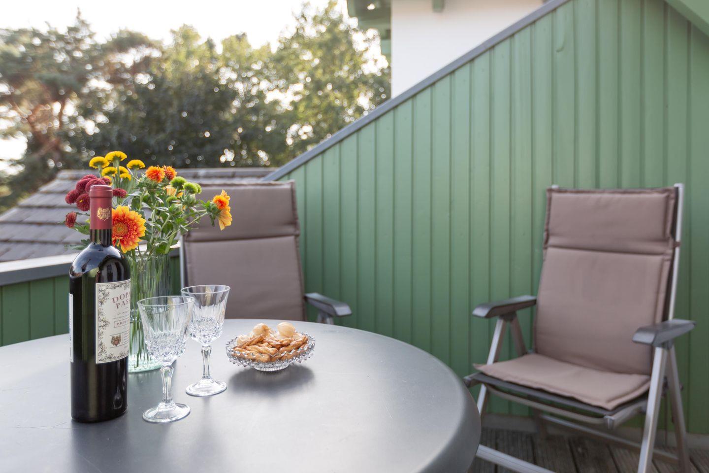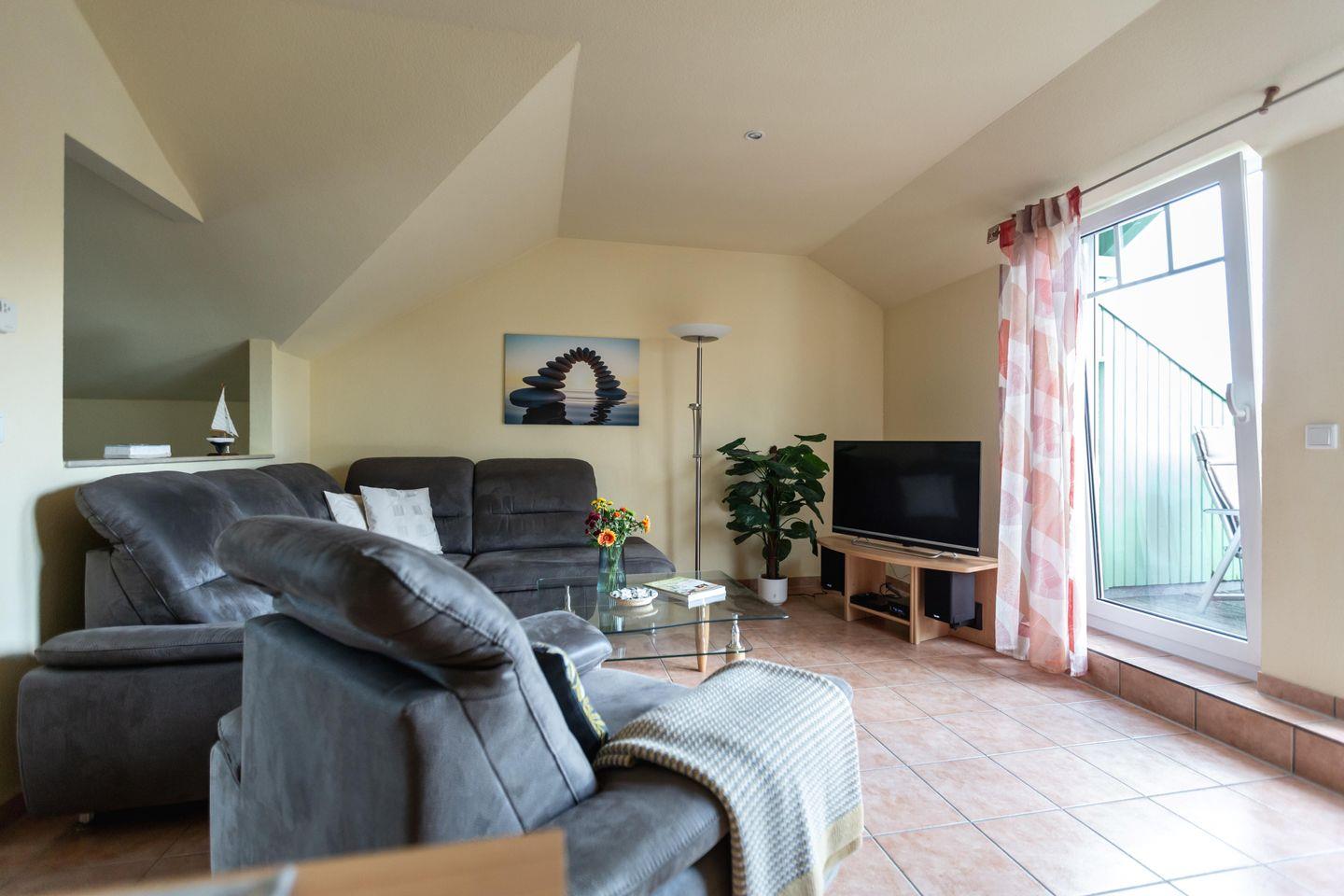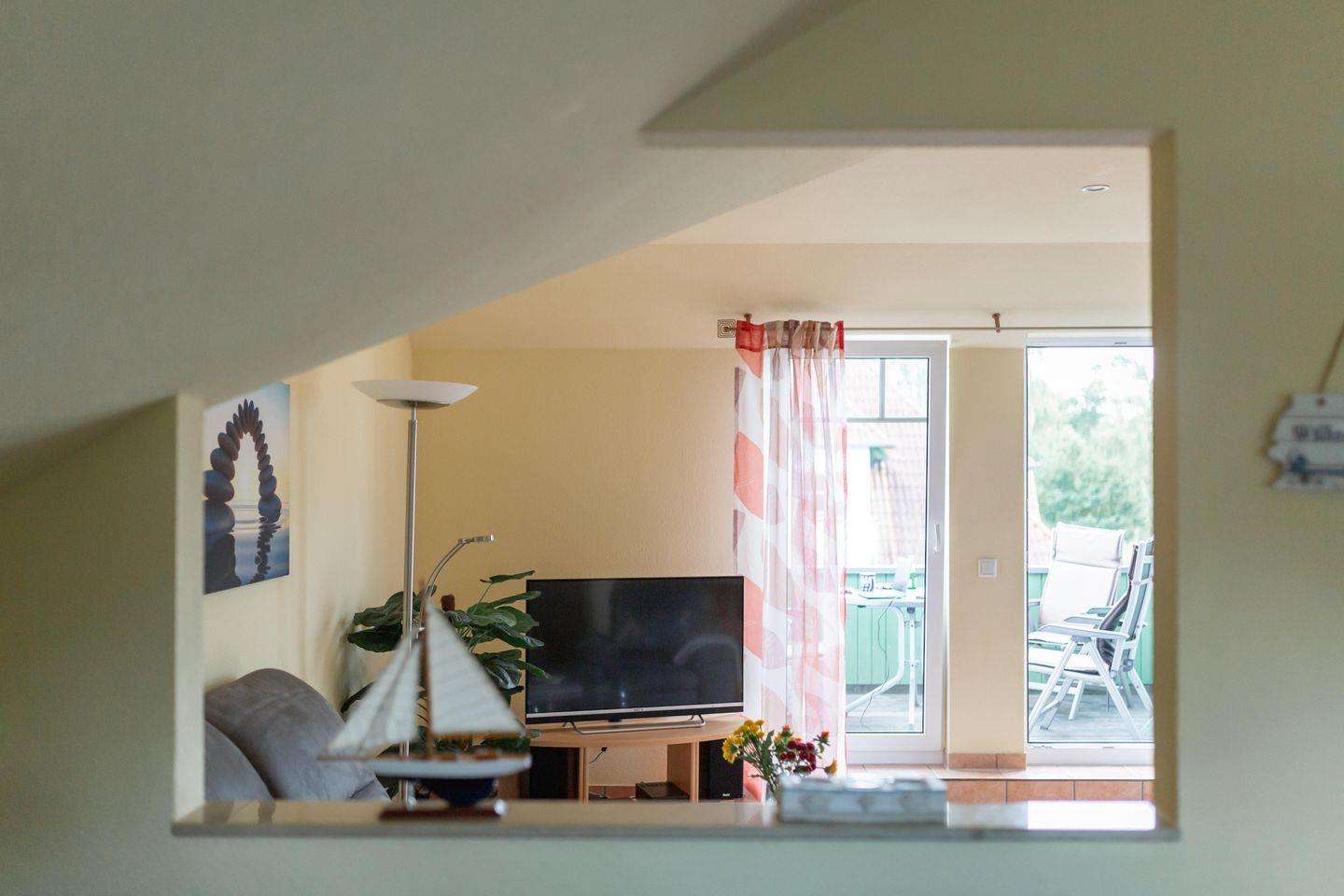 Charmante Dachgeschosswohnung in Karlshagen, nur 100 m vom Strand, ideal für erholsame Ostseeferien mit Balkon und WLAN.