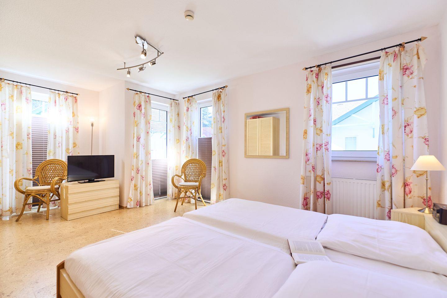1 SZ mit Doppelbett u. TV, 1 SZ mit 2 Betten (je 1,40 Breite) u. TV, Kinderreisebett und Hochstuhl kostenlos