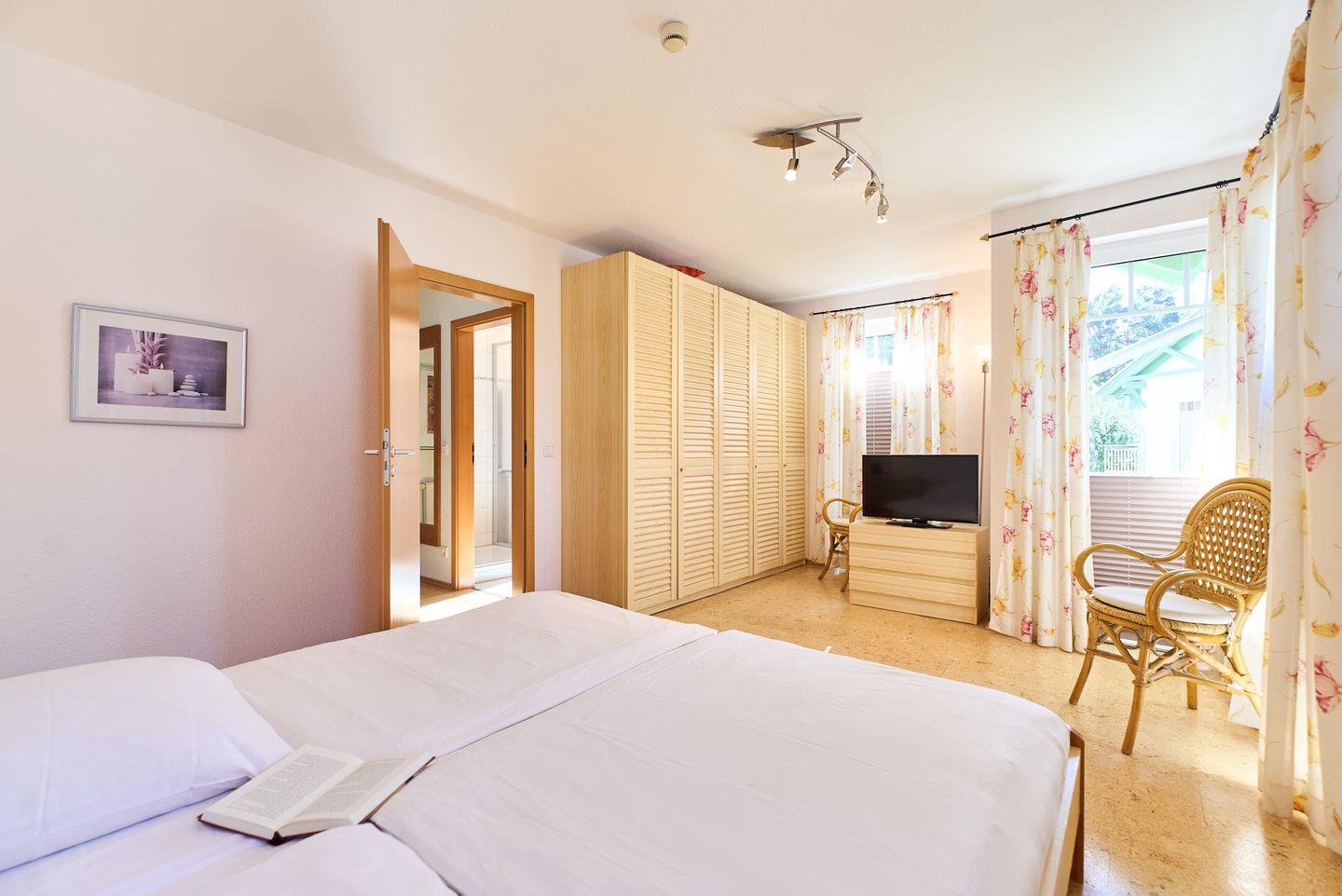 Die Wohnung verfügt über zwei komfortable Schlafzimmer, die für eine erholsame Nachtruhe sorgen. Eines der Schlafzimmer ist mit einem Doppelbett ausgestattet, während das zweite Schlafzimmer Platz für Kinder oder Gäste bietet. Für die kleinsten Gäste steht ein Kinderhochstuhl und ein Babybett zur Verfügung, sodass Ihrer Familie nichts im Wege steht. Zusätzliche Extras wie Bettwäsche und Handtücher (diese sind NICHT in Ihrer Buchung enthalten),können über unsere Gäste-App dazu gebucht werden.
