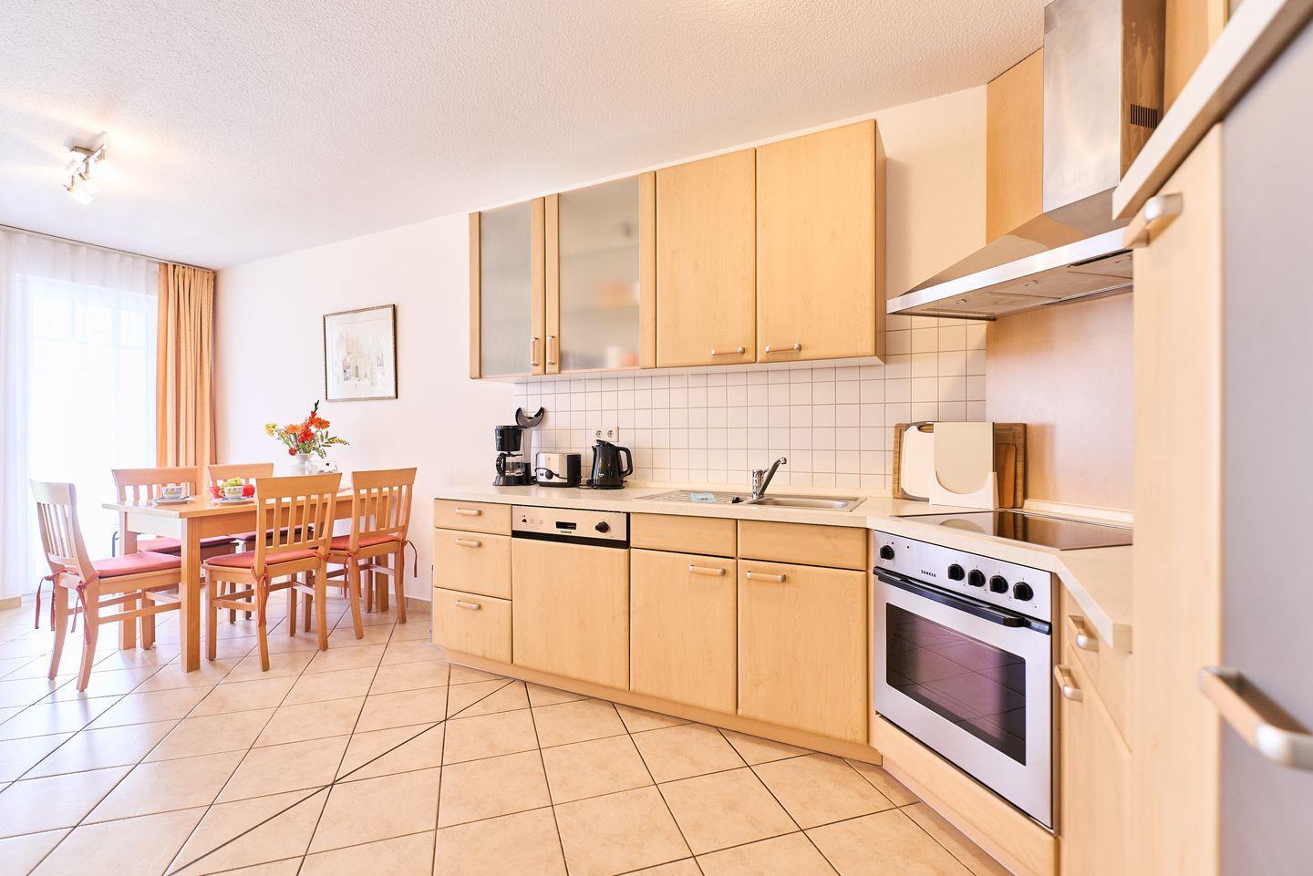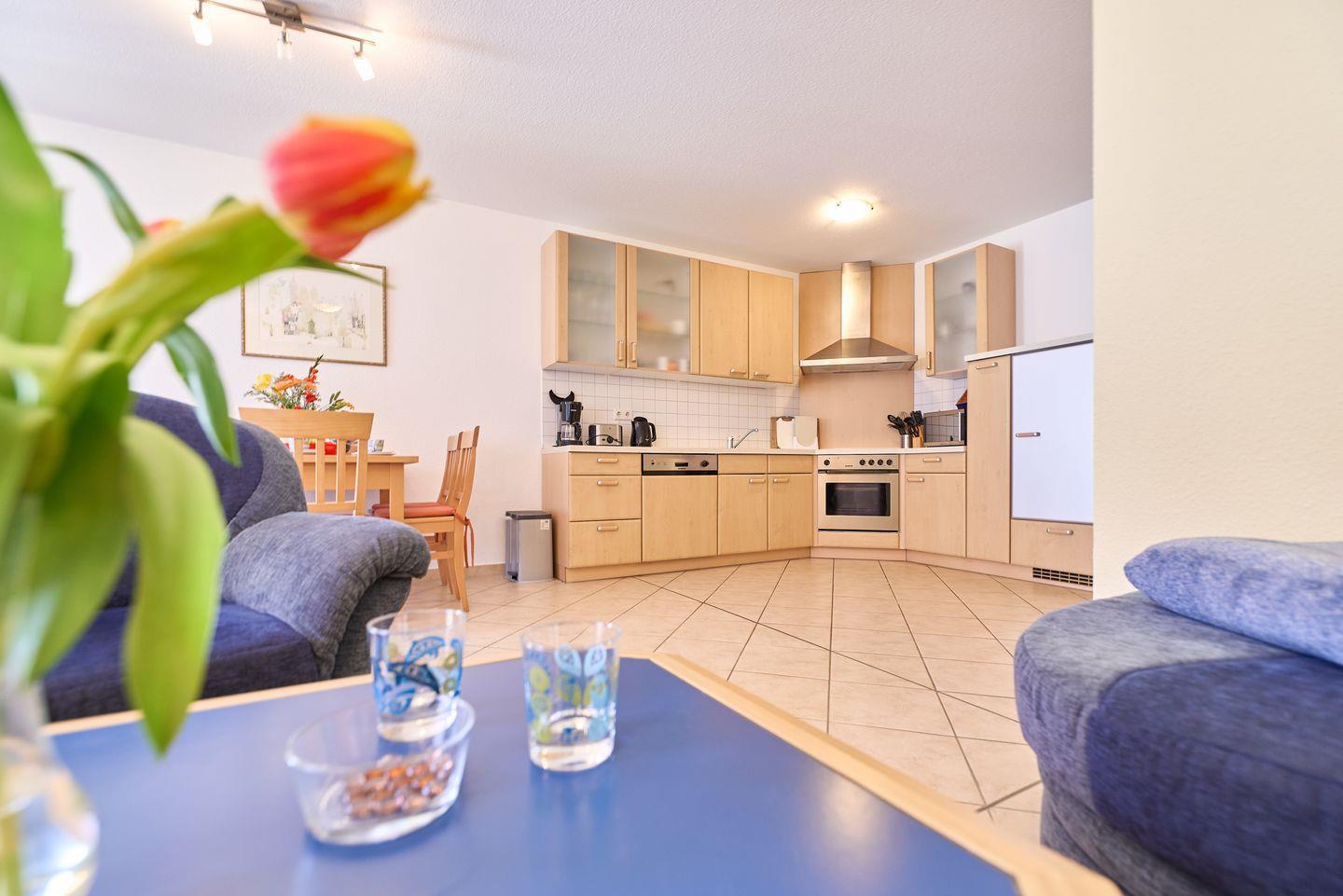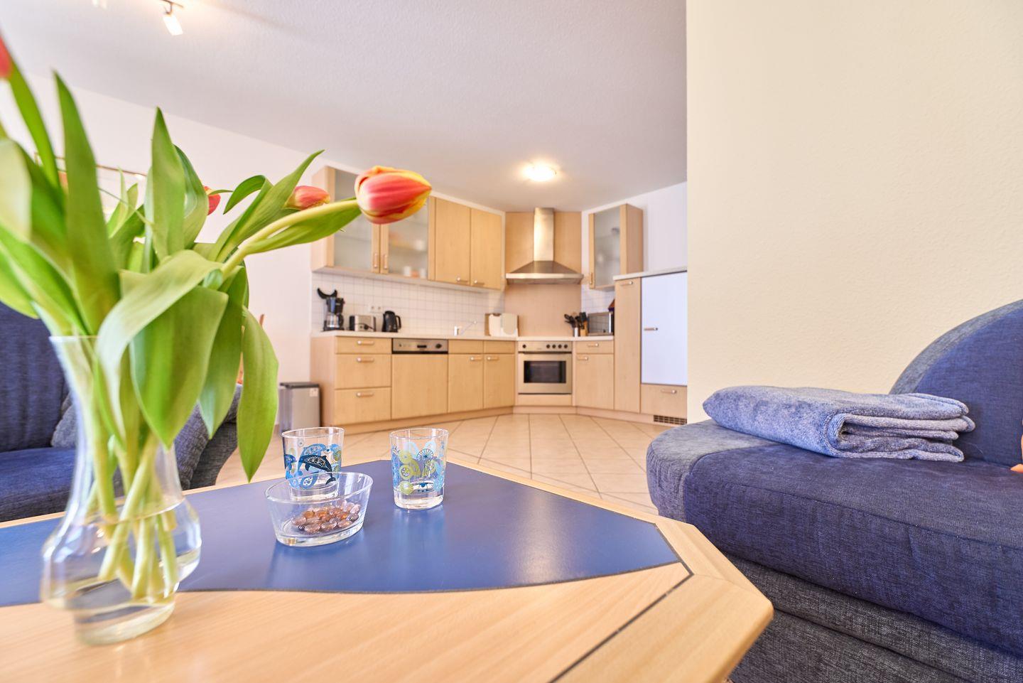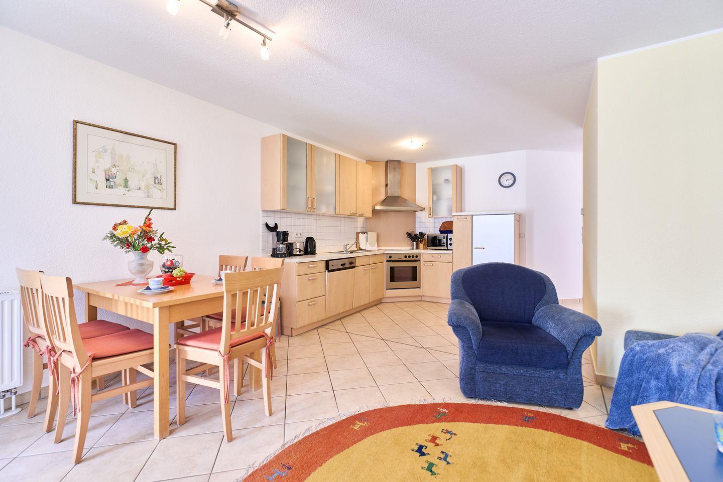 Die Ferienwohnung verfügt über ein geschmackvoll eingerichtetes Schlafzimmer mit komfortablen Schlafmöglichkeiten für zwei Personen. Der offene Wohnbereich, ausgestattet mit einer bequemen Sofaecke, einem Essbereich und einer modernen Küche, lädt zu geselligen Abenden und entspannten Frühstücken ein. Hier können Sie Ihre Lieblingsgerichte zubereiten, denn die Küche ist komplett mit einem Herd, Backofen, Spülmaschine und Kühlschrank sowie Küchenutensilien ausgestattet. Für Unterhaltung ist ebenfalls gesorgt: Ein TV mit DVD-Spieler und eine HiFi-Anlage stehen Ihnen zur Verfügung, ebenso wie eine Auswahl an Spielen. Zusätzliche Extras wie Bettwäsche und Handtücher (diese sind NICHT in Ihrer Buchung enthalten),können über unsere Gäste-App dazu gebucht werden.