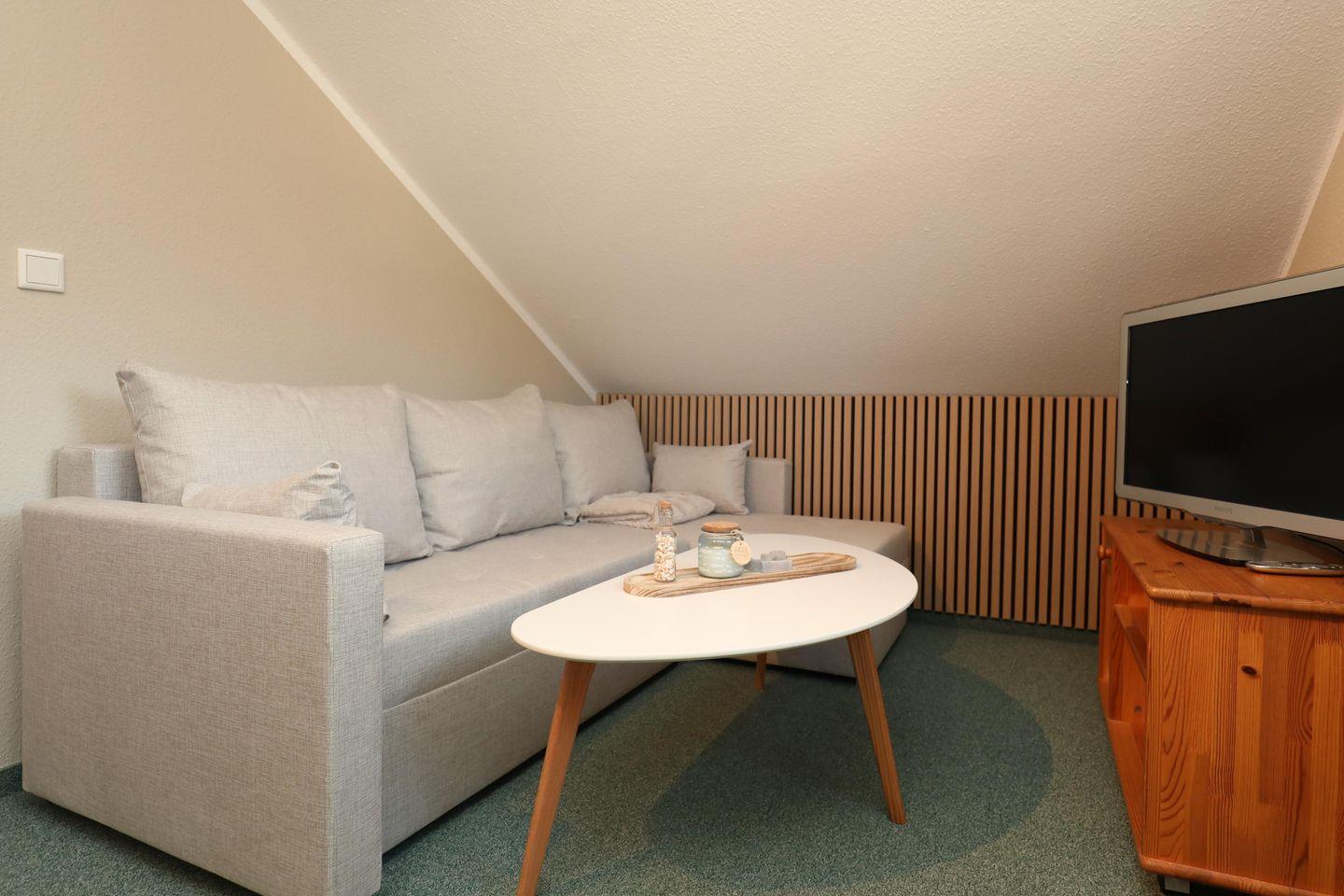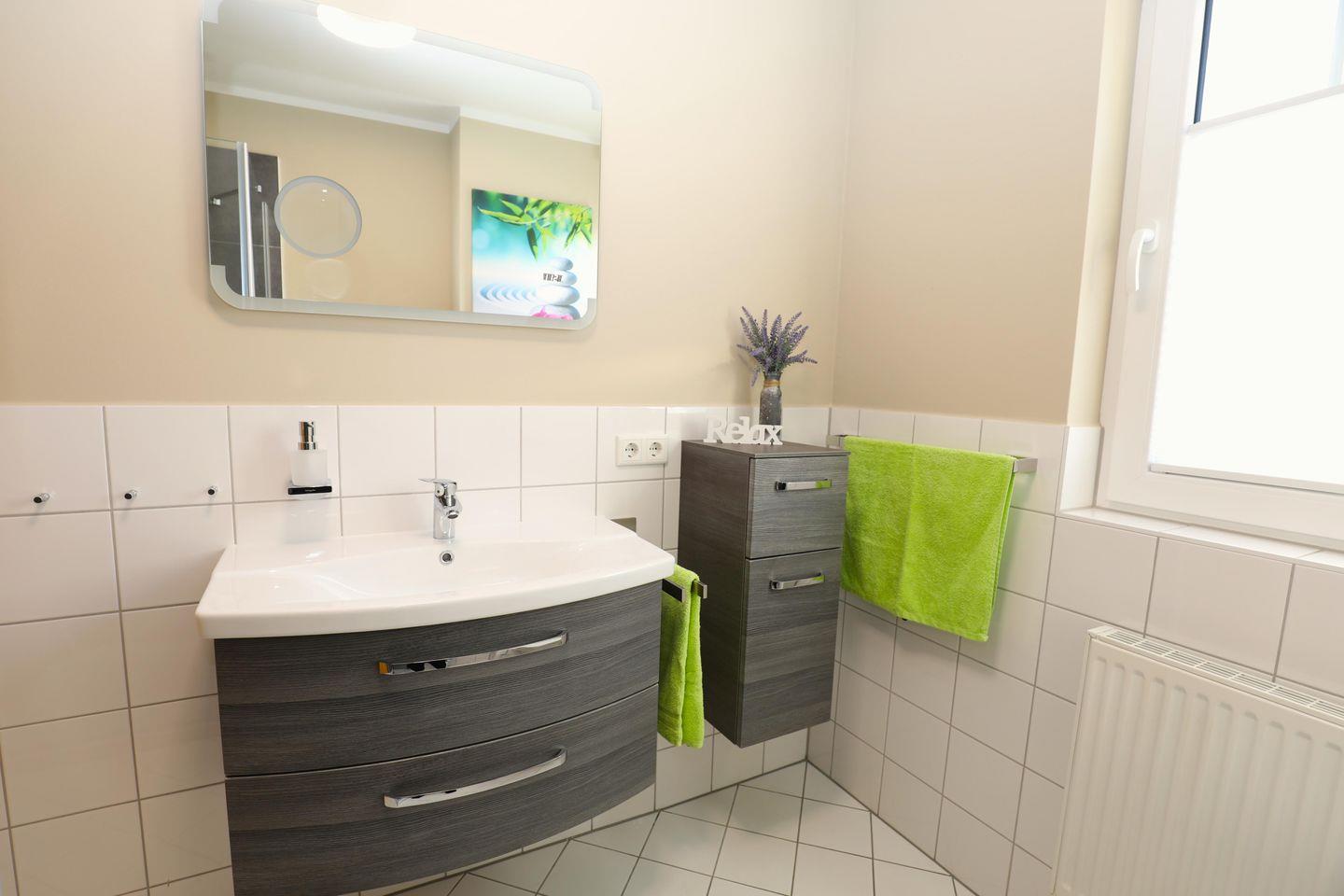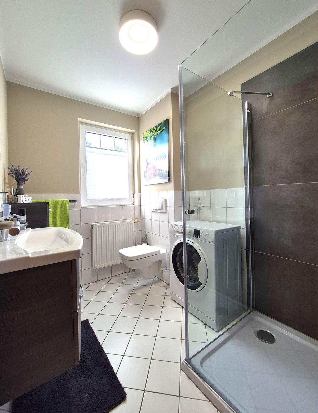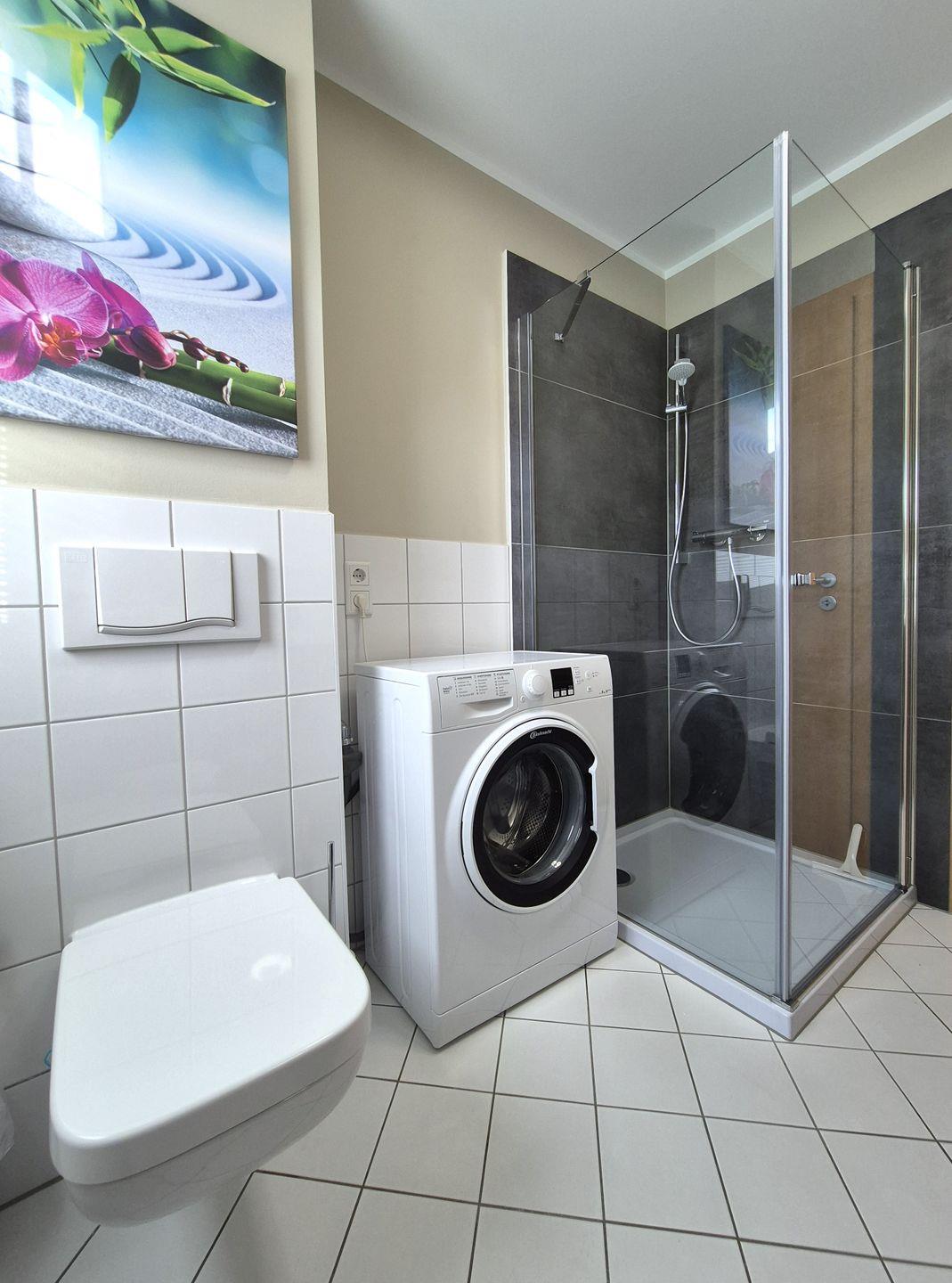 Ein weiteres Highlight der Unterkunft ist das moderne Badezimmer mit bodengleicher Dusche. Hier können Sie nach einem erlebnisreichen Tag in der Ostsee-Welt neue Kraft tanken. Zusätzlich steht Ihnen eine Waschmaschine zur Verfügung.