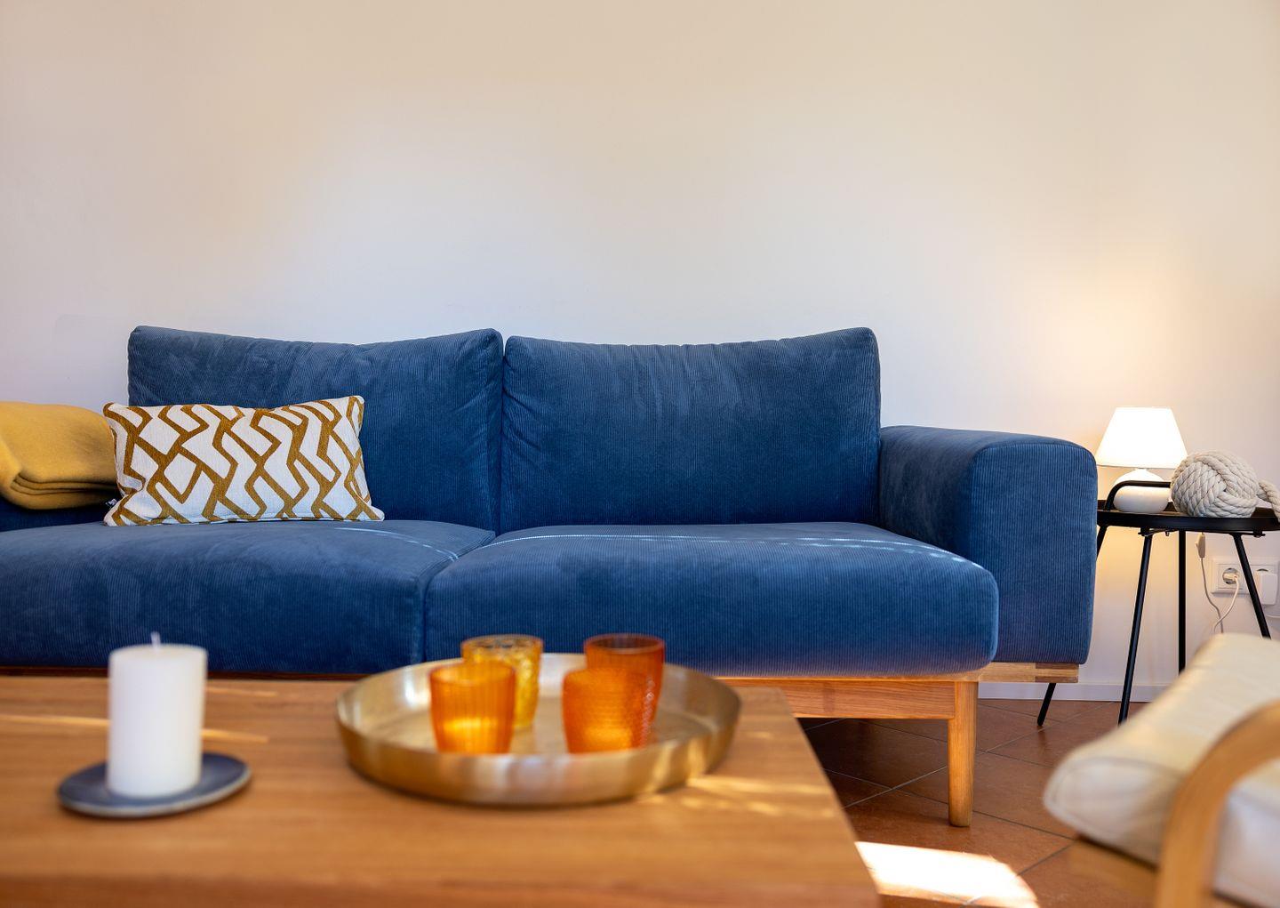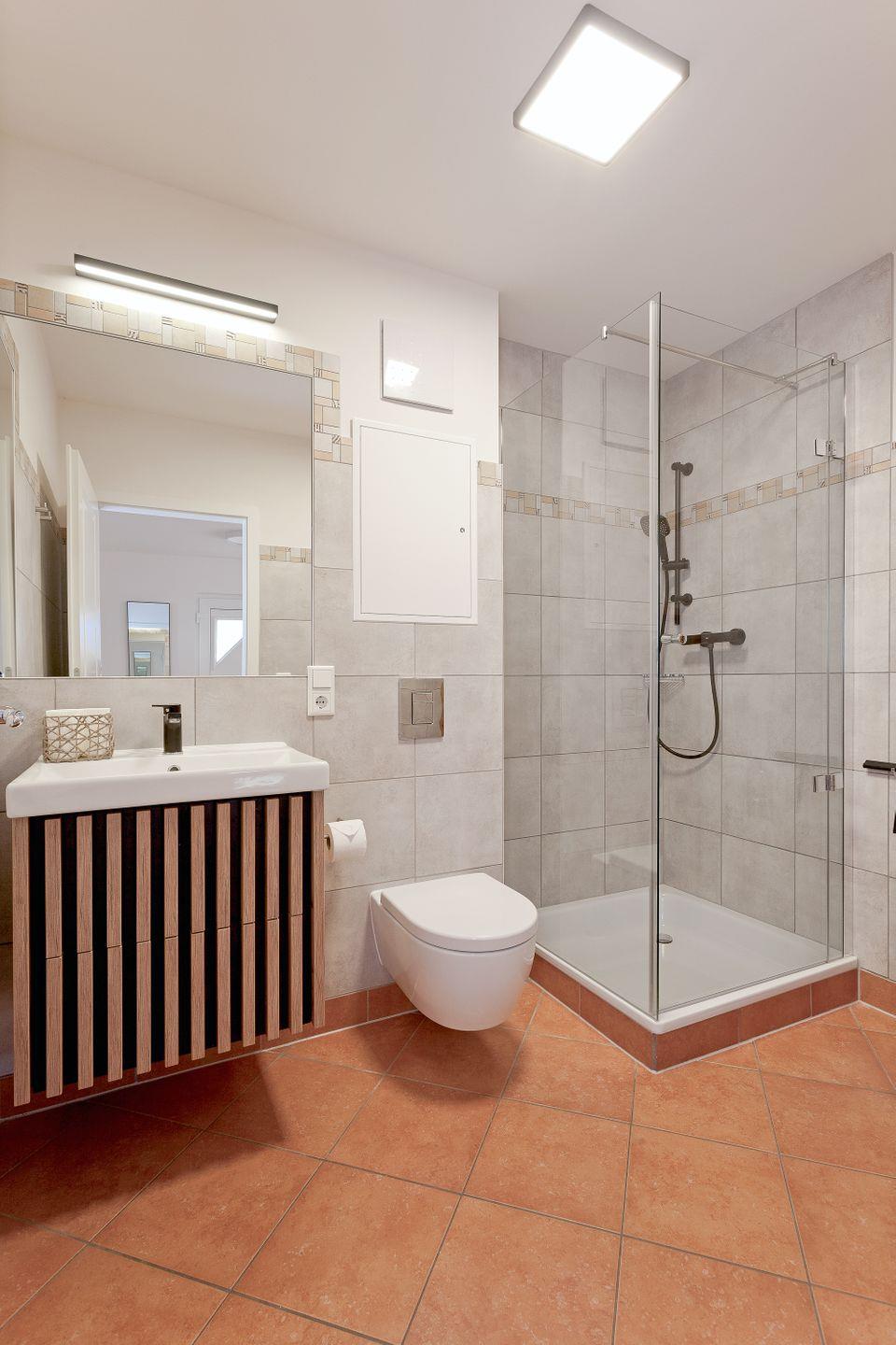 Erdgeschosswohnung 60 m², WZ mit Couch / Küche, Bad mit Dusche,