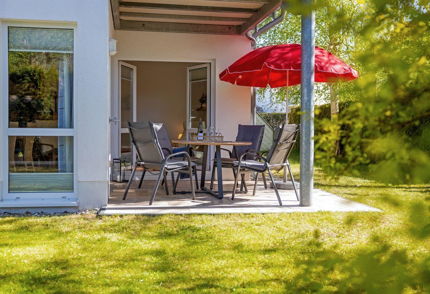 Ein Highlight der Unterkunft ist die überdachte Terrasse, die mit Gartenmöbeln ausgestattet ist und einen einladenden Platz im Freien bietet. Hier können Sie die frische Ostseeluft genießen, einen Kaffee schlürfen oder beim Grillen köstliche Leckereien zubereiten. Zudem steht Ihnen ein eigener Parkplatz und ein Fahrradschuppen zur Verfügung, sodass Sie auch mit Auto und Fahrrädern bequem anreisen können.