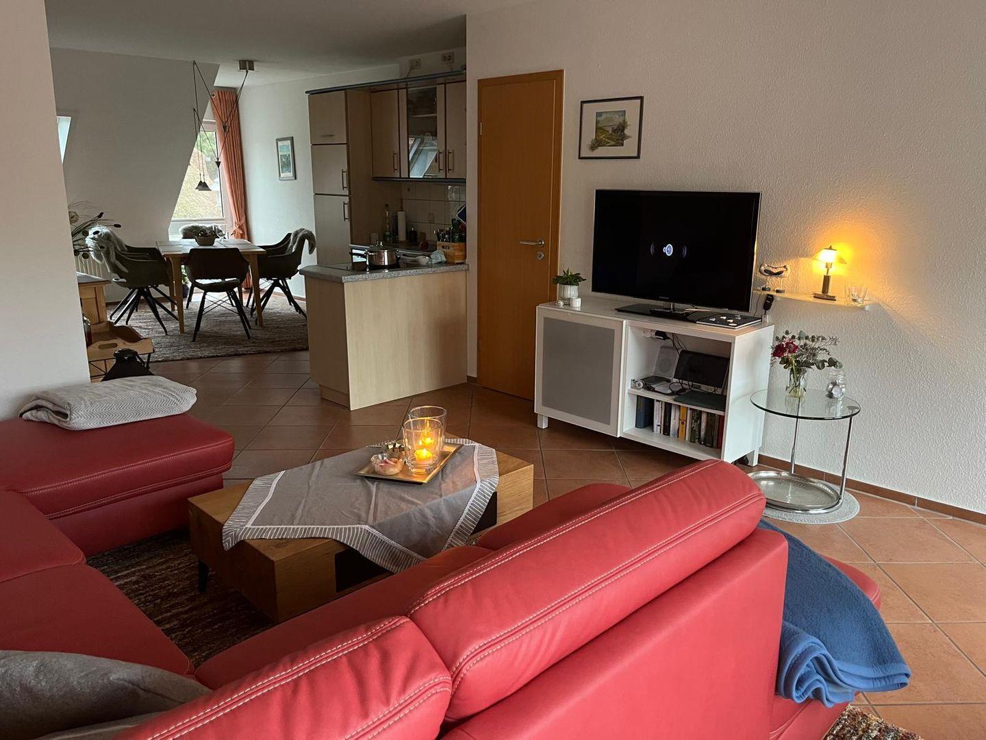 Die Wohnung ist komplett ausgestattet und lässt keine Wünsche offen. Die offene Küche ist modern eingerichtet und bietet Ihnen alles, was Sie für die Zubereitung Ihrer Lieblingsgerichte benötigen – vom Induktionsherd bis zur Spülmaschine. Der angrenzende Essbereich ist ideal, um gemeinsame Abende mit der Familie oder Freunden zu verbringen. Das helle, einladende Wohnzimmer mit einem bequemen Sofa und einer HiFi-Anlage lädt zum Verweilen ein und sorgt für die perfekte Gemütlichkeit nach einem erlebnisreichen Tag.