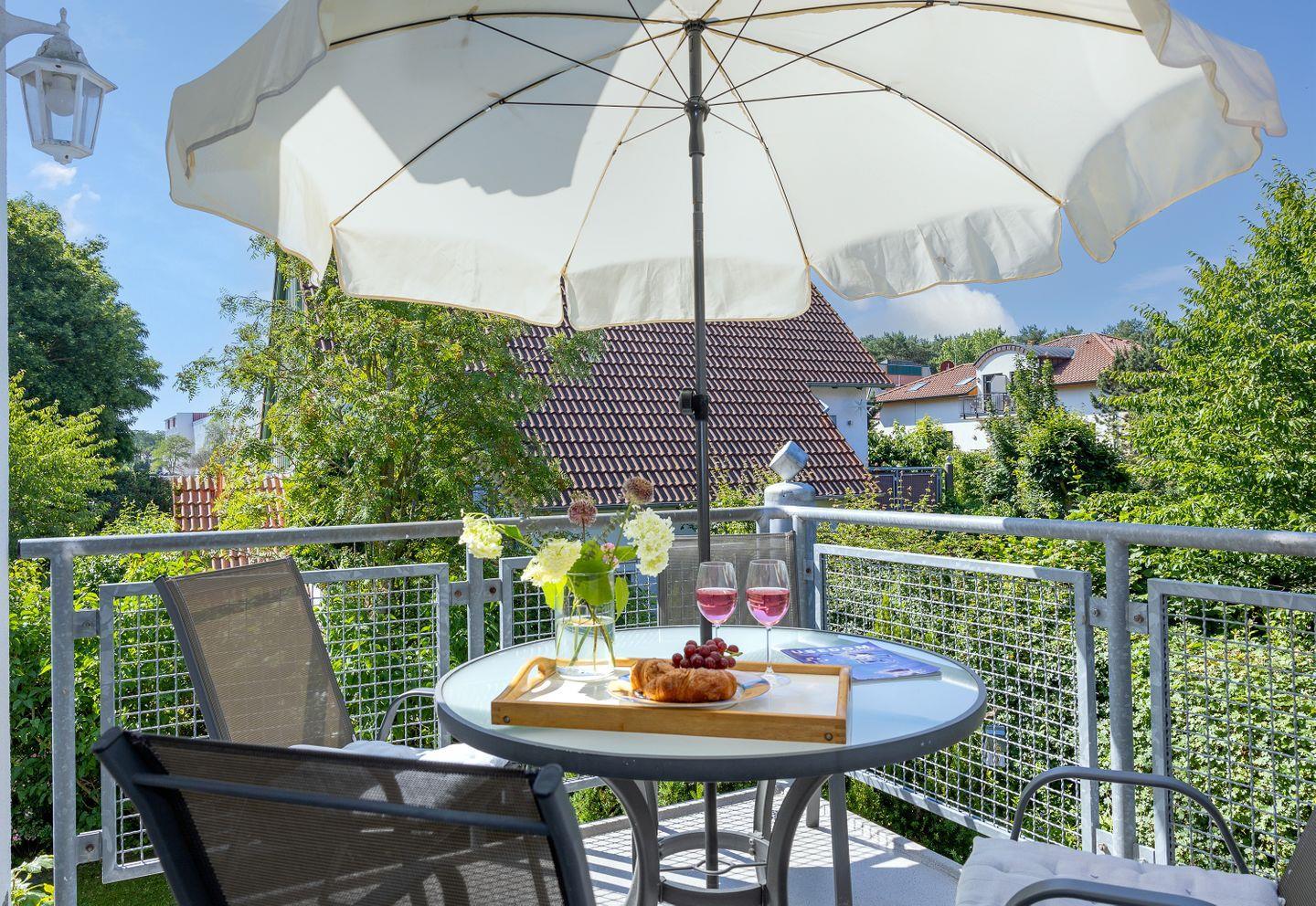 Ein Balkon rundet das Angebot ab, auf dem Sie die frische Ostseeluft genießen oder einfach nur entspannen können. Für zusätzliche Annehmlichkeiten sorgt der private Parkplatz, der Ihnen während Ihres Urlaubes zur Verfügung steht. WLAN ist ebenfalls vorhanden, sodass Sie mit der Welt verbunden sind und Erinnerungen mit Freunden und Familie teilen können.