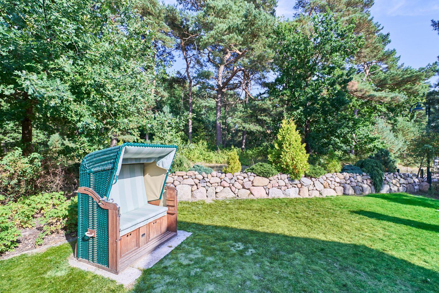 Terrasse mit Strandkorb, Abstellschuppen