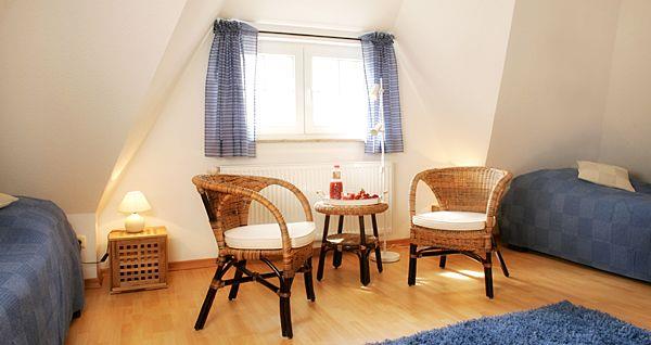 1 SZ mit 2 Einzelbetten, 1 Außengrill, 2 PKW-Stellplätze, Abstellschuppen, Terrasse mit Strandkorb
