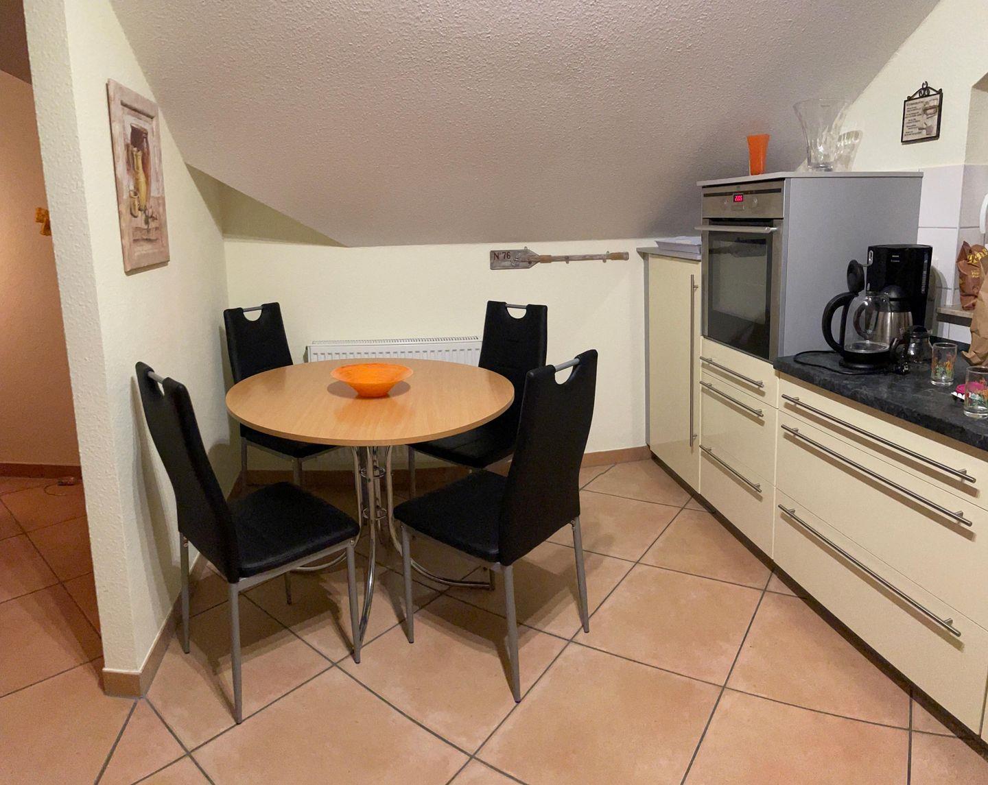 Die Ferienwohnung verfügt über zwei komfortable Schlafzimmer, die mit stilvollen Fliesenböden ausgestattet sind. Diese sorgen für eine angenehm frische Atmosphäre. Ein gemütliches Wohnzimmer mit einer Sofaecke, Kaminofen und einem TV lädt dazu ein, nach einem ereignisreichen Tag am Strand zu entspannen. In der offenen Küche sind alle nötigen Küchenutensilien, ein Herd, ein Backofen sowie eine Spülmaschine vorhanden, sodass sie sich mühelos selbst versorgen können. Der Essbereich bietet genügend Platz, um gemeinsam zu speisen und die Erlebnisse des Tages Revue passieren zu lassen.