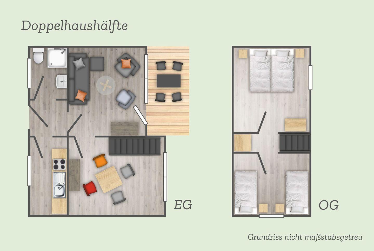 Unsere modernen Doppelhäuser verbinden nordischen Charme mit Platz für die ganze Familie. Mit Terrasse, Garten und der Nähe zum Strand bieten sie die perfekte Balance zwischen Erholung und Aktivitäten – ideal für alle, die gemeinsam Urlaub am Meer genießen möchten.