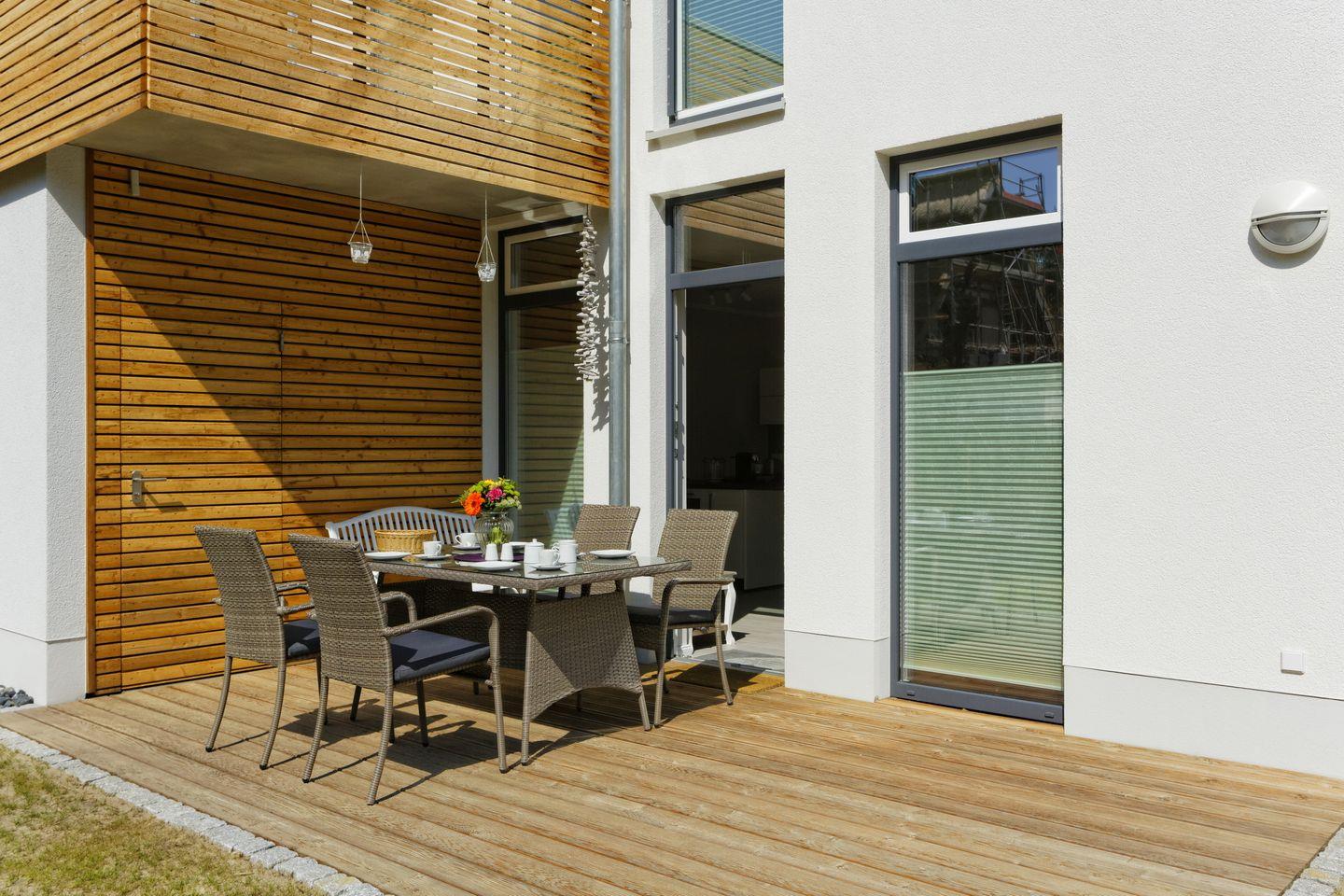 Das behagliche Apartment bietet euch eine schöne Terrasse nach Süden gelegen; hier lässt sich wunderbar entspannen und das Inselfeeling Usedoms genießen. Grill, Sonnenschirm und Gartenmöbel runden die Ausstattung ab. Ein Kinderbett und ein Kinderhochstuhl gehören zur Ausstattung und stehen euch kostenfrei zur Verfügung.