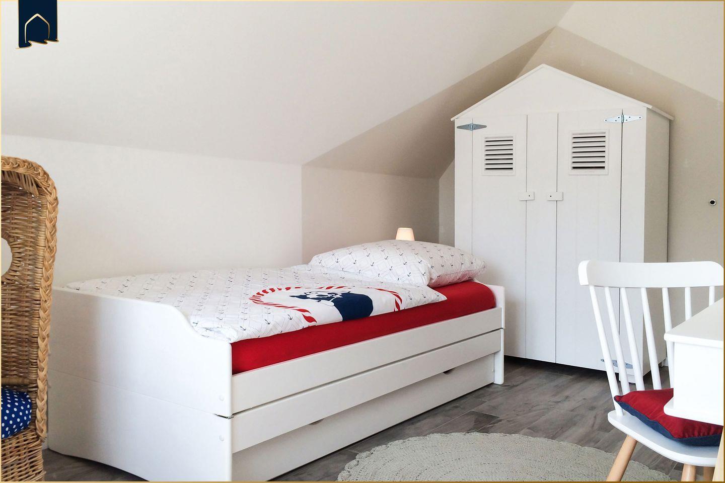 Für Familien mit Kindern ist das REETHÄUS`L besonders gut ausgestattet. Ein Treppenschutzrollo, ein stabiler Hochstuhl aus Holz, ein Kinderreisebett mit Matratze, eine Babywanne, ein Töpfchen, ein Fußtrittchen, ein Familien-WC-Sitz mit integrierter Kinderbrille sowie Kinderbesteck, Geschirr, Bücher und Spiele sorgen für stressfreie Urlaubstage. Im Garten steht außerdem ein kleines Holzhaus bereit, gefüllt mit Strandutensilien, Spielzeug und einem Bollerwagen, der für Ausflüge oder den kurzen Weg zum Strand ideal ist. Zwei PKW-Stellplätze sowie eine Unterstellmöglichkeit für Fahrräder runden die Ausstattung ab.