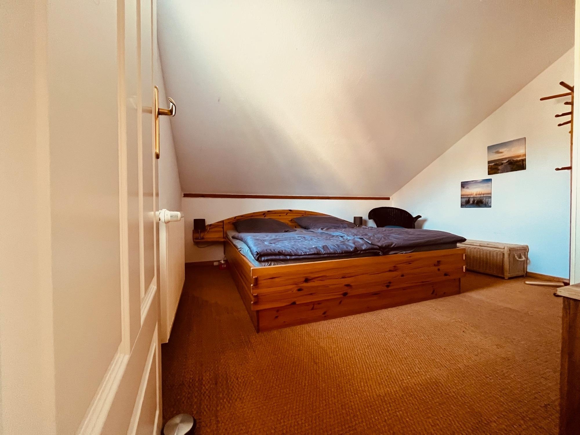 Des Weiteren 1 Zimmer mit 2 Schlafmöglichkeiten sowie 1 Dusch-Bad. Über eine Treppe gelangt man in den oberen Bereich des Objektes. Hier befinden sich das Wohnzimmer sowie 1 Schlafzimmer mit Doppelbett. Über die großzügig gestaltete Fenster-Giebelfront genießt man den Blick in die Natur, da dieses Haus in einer Endlage liegt.