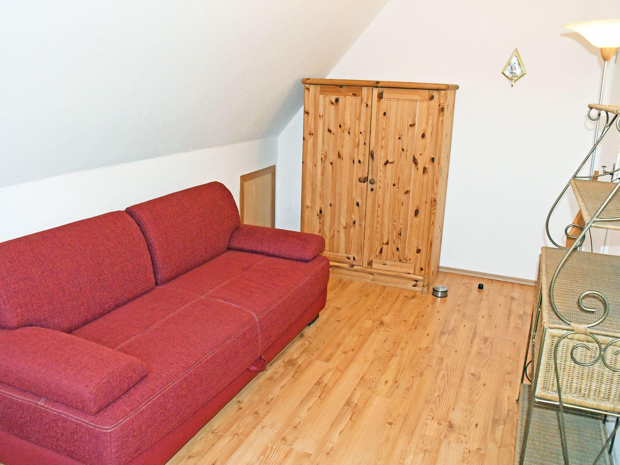 Im Wohnzimmer befinden sich eine bequeme Sitzcouch mit Tisch und ein Flachbild - TV - Gerät. Die Couch hier kann bei Bedarf für einen Gast aufgebettet werden.