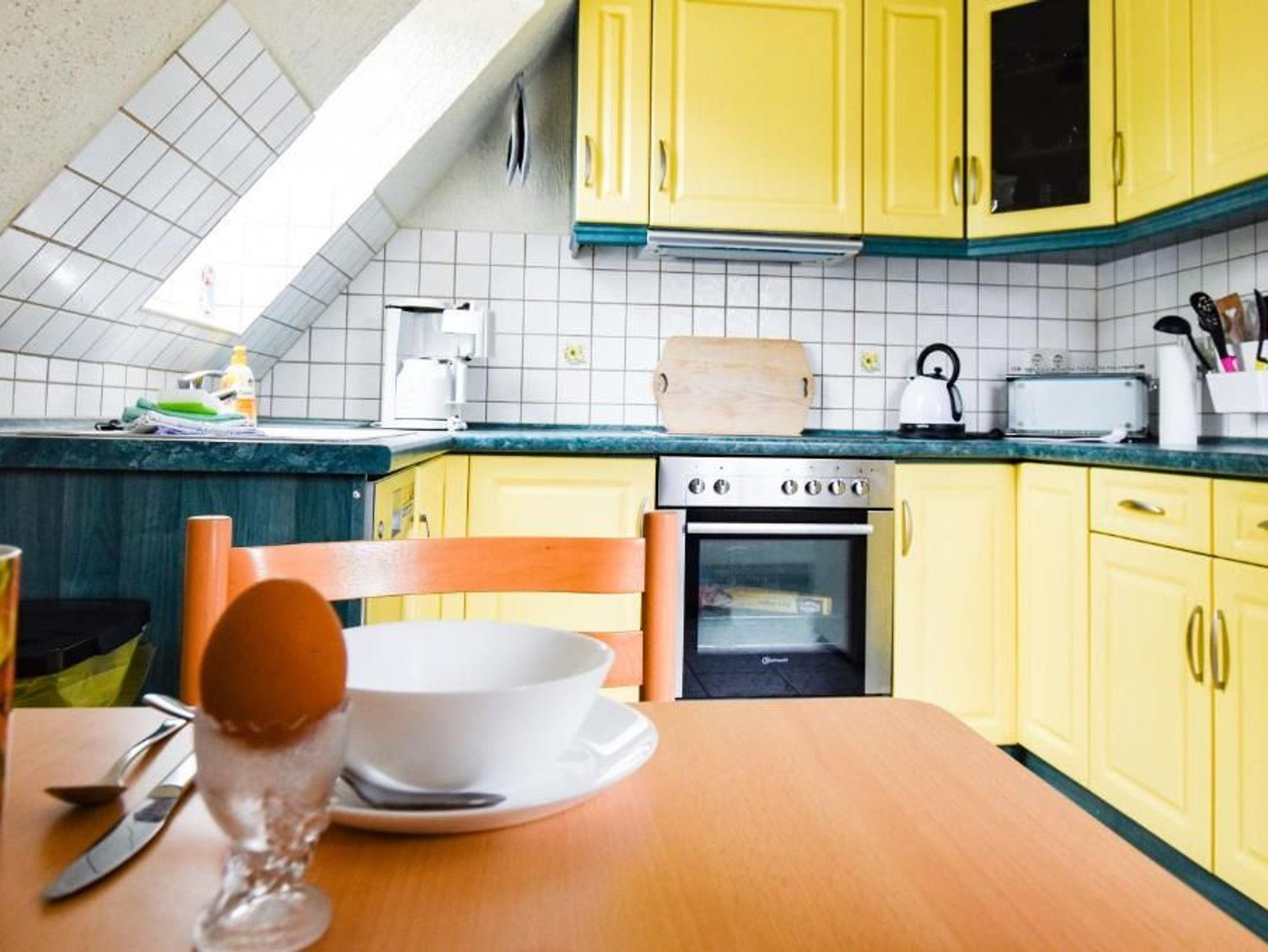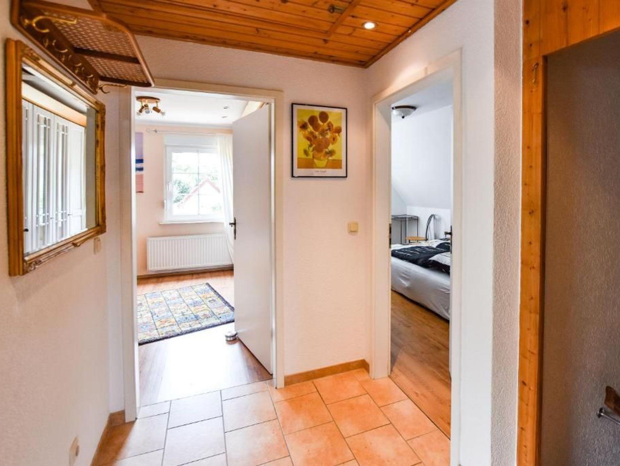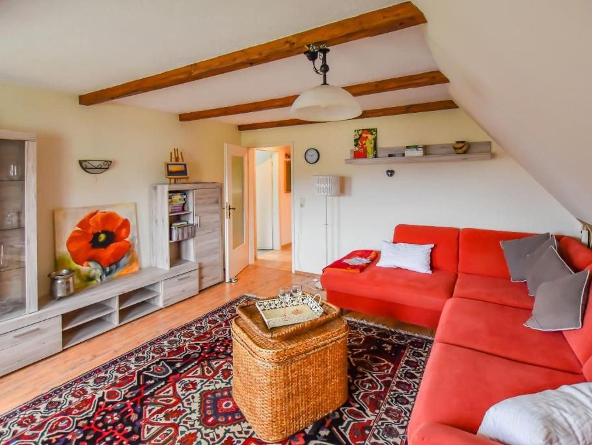 Die Ferienwohnung ist ca. 70 qm groß, hat Platz für maximal 5 Erwachsene und wurde modern und komfortabel mit Internetzugang eingerichtet. Sie kann über einen eigenen Eingang und eine Treppe ins Obergeschoss erreicht werden.