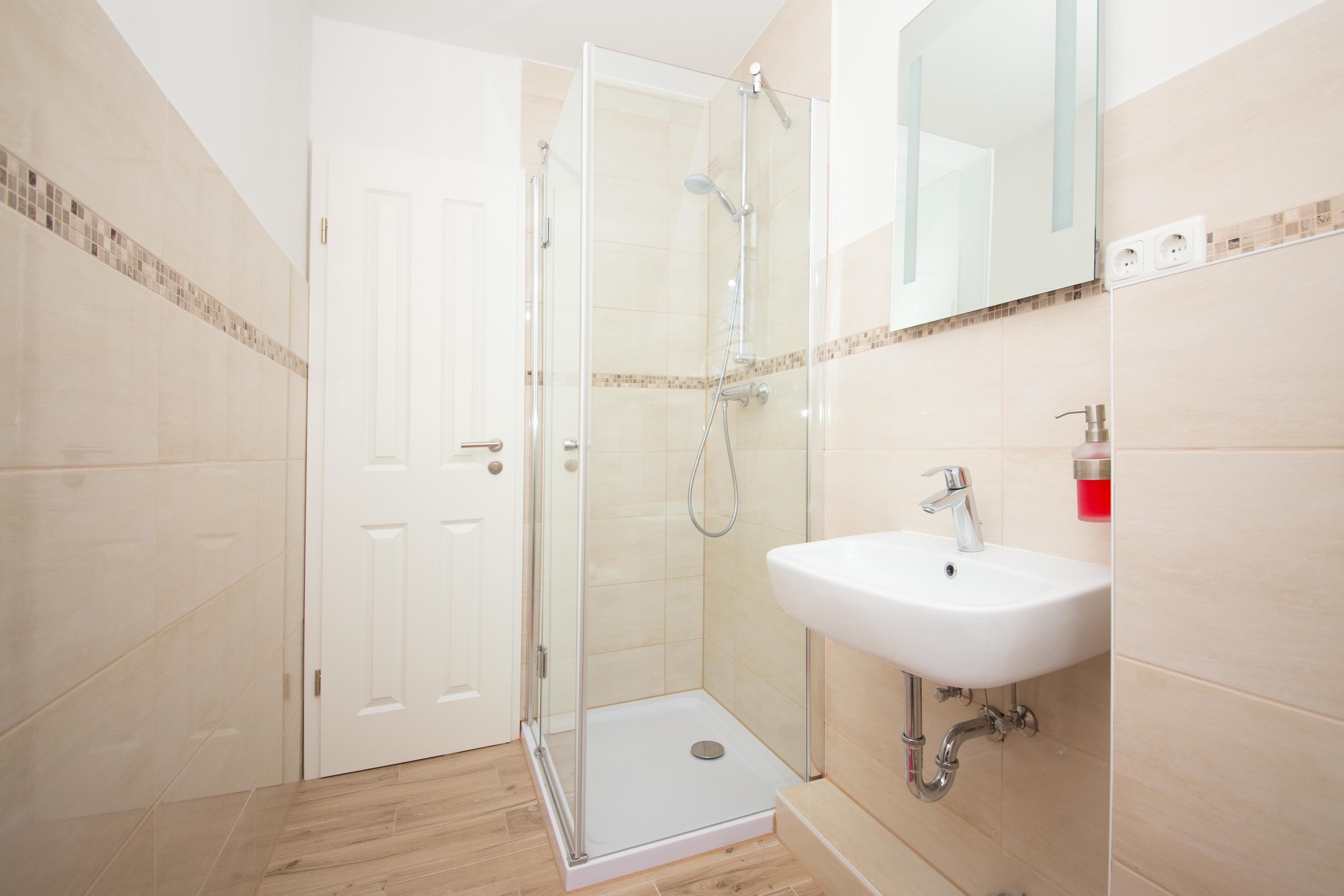 Bad und Sanitär: Duschbad und WC mit elektrischem Lüftungssystem