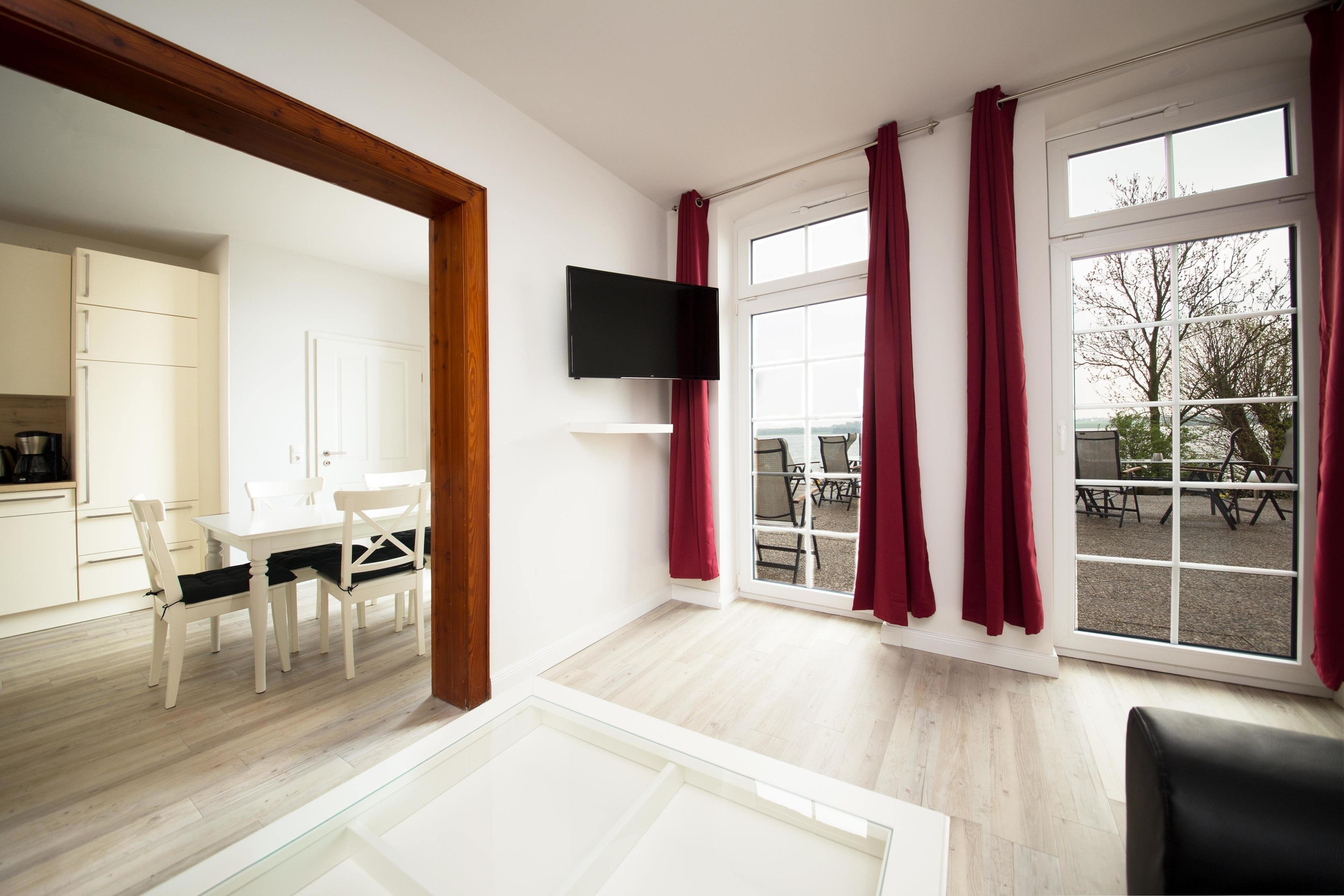 Unterhaltung und Kommunikation: Fernseher mit Satellitenanschluss. Das Appartement wird über ein Treppenhaus erreicht. Der Wohn-, Schlaf- sowie Eingangsbereich ist mit Rauchmeldern ausgestattet.