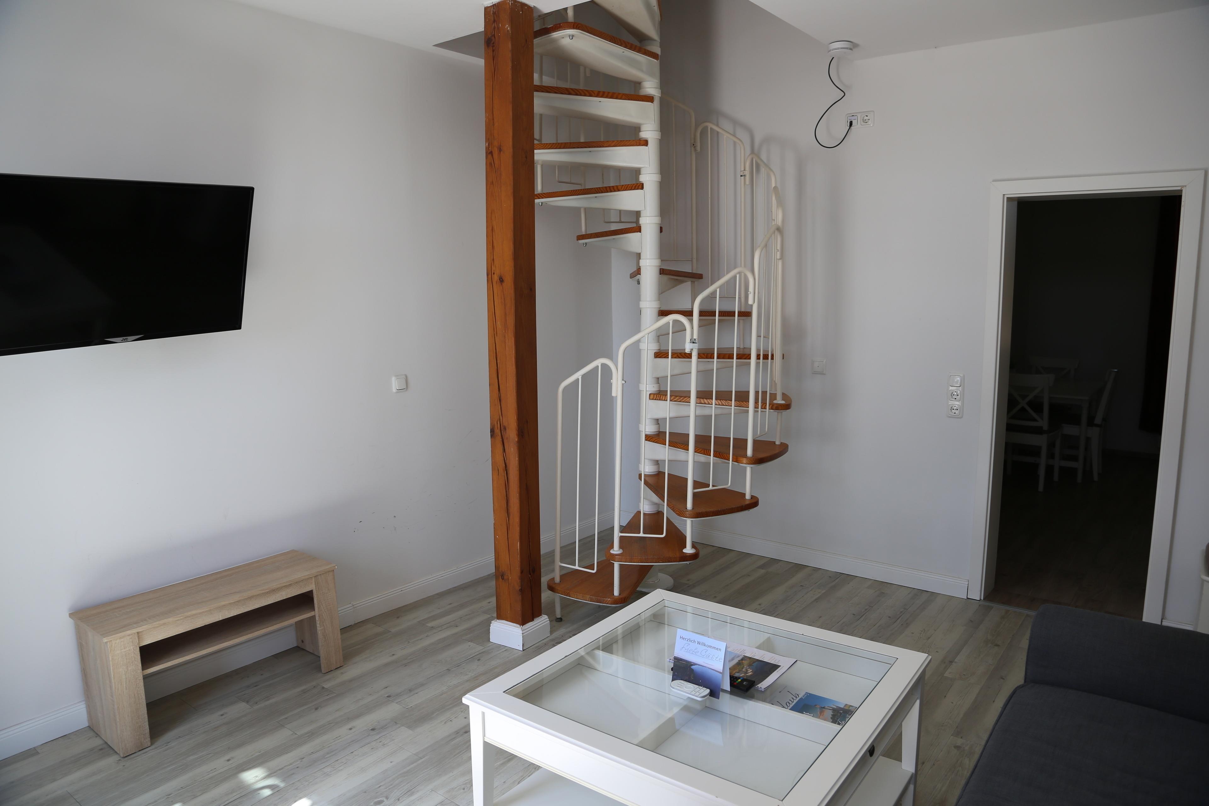 Dieses Appartement besteht aus einem Flur, einem Wohnbereich mit Küchenzeile, sep. Schlafzimmer erreichbar über eine im Appartement befindliche Wendeltreppe und einem Badezimmer.