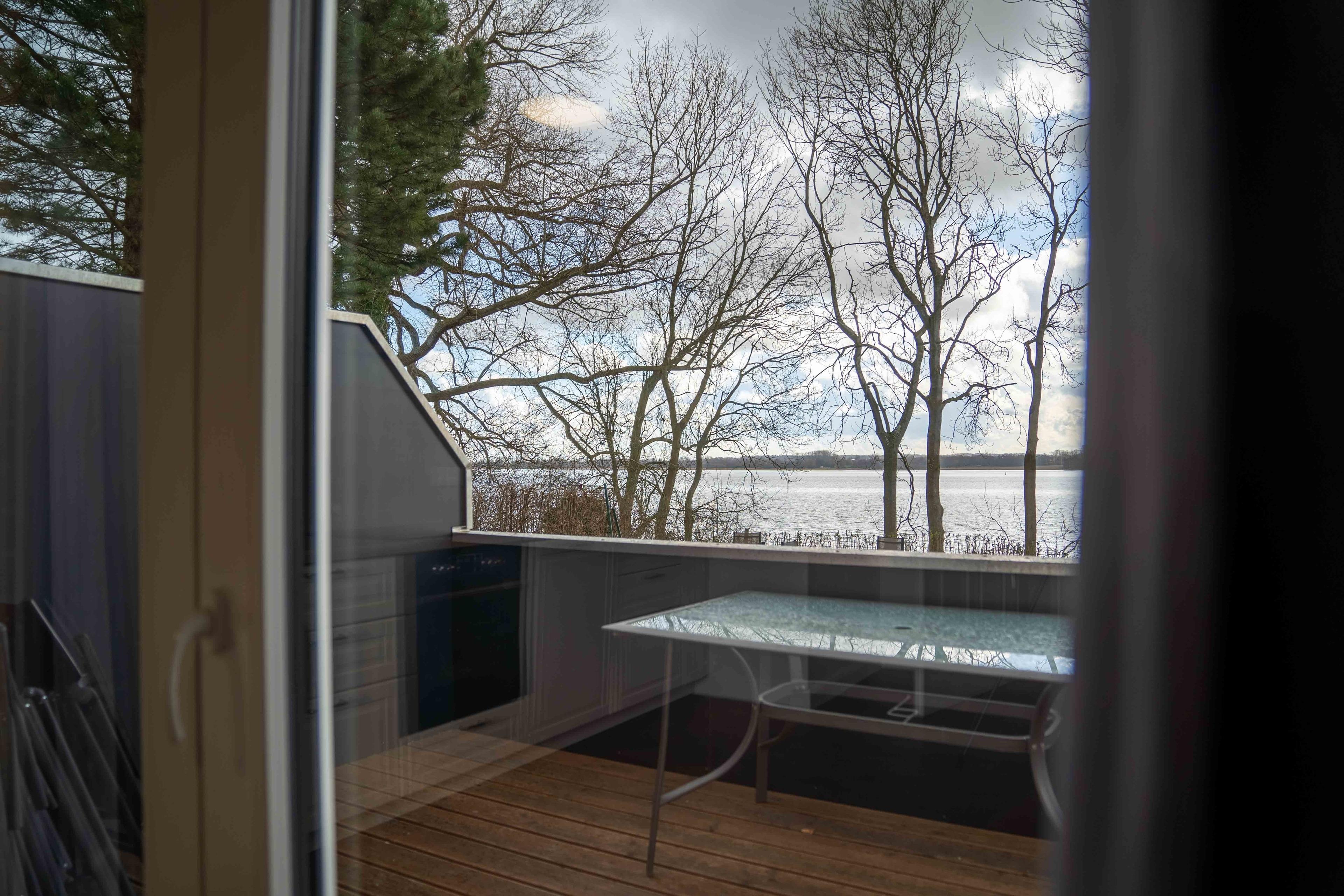 Die Terrasse, die dazugehörigen Sitzmöglichkeiten und der Grill sind für alle Gäste verfügbar. Von dort aus erhält man einen sehr schönen Ausblick auf die Schlei.