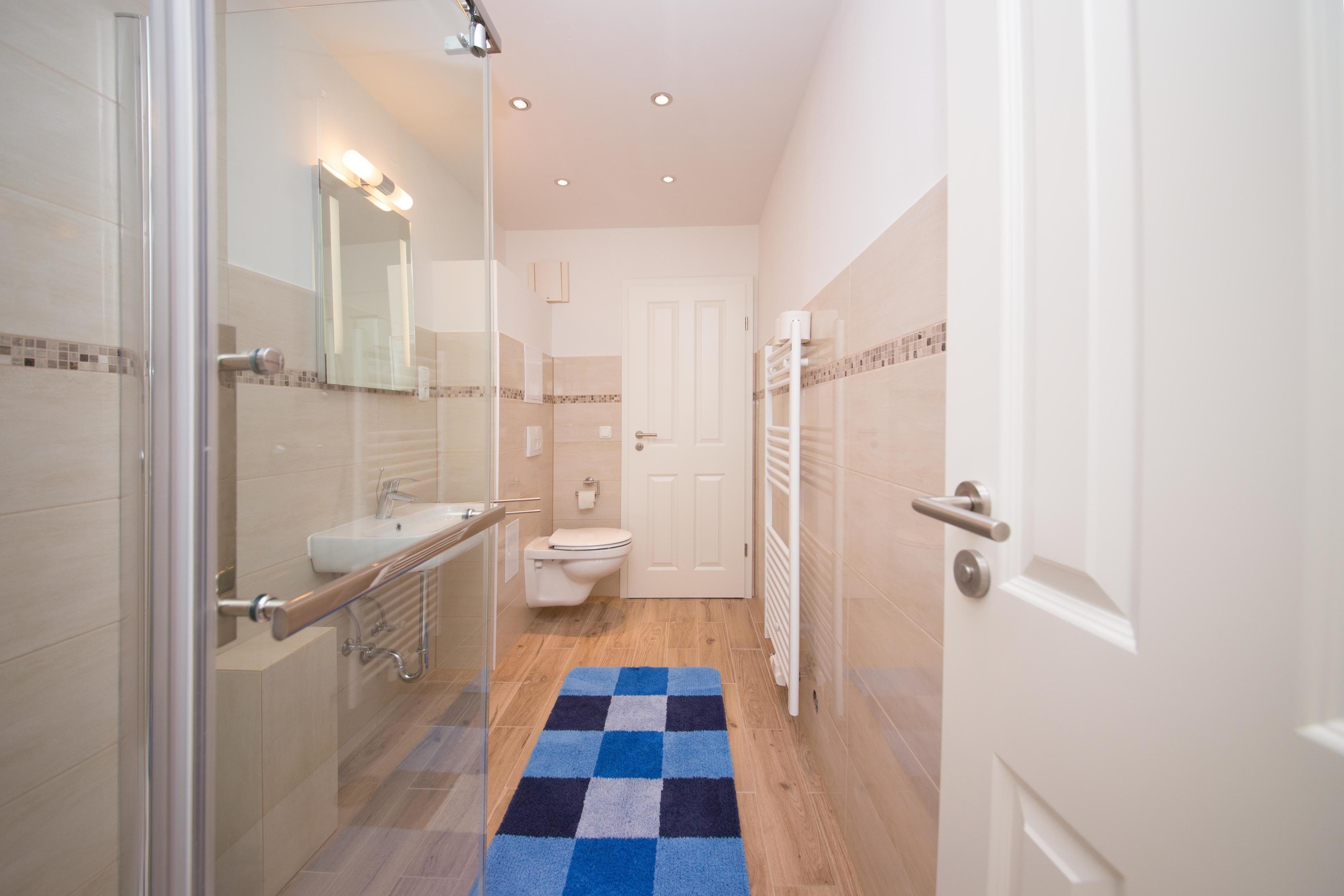 Bad und Sanitär: Duschbad und WC mit elektrischem Lüftungssystem