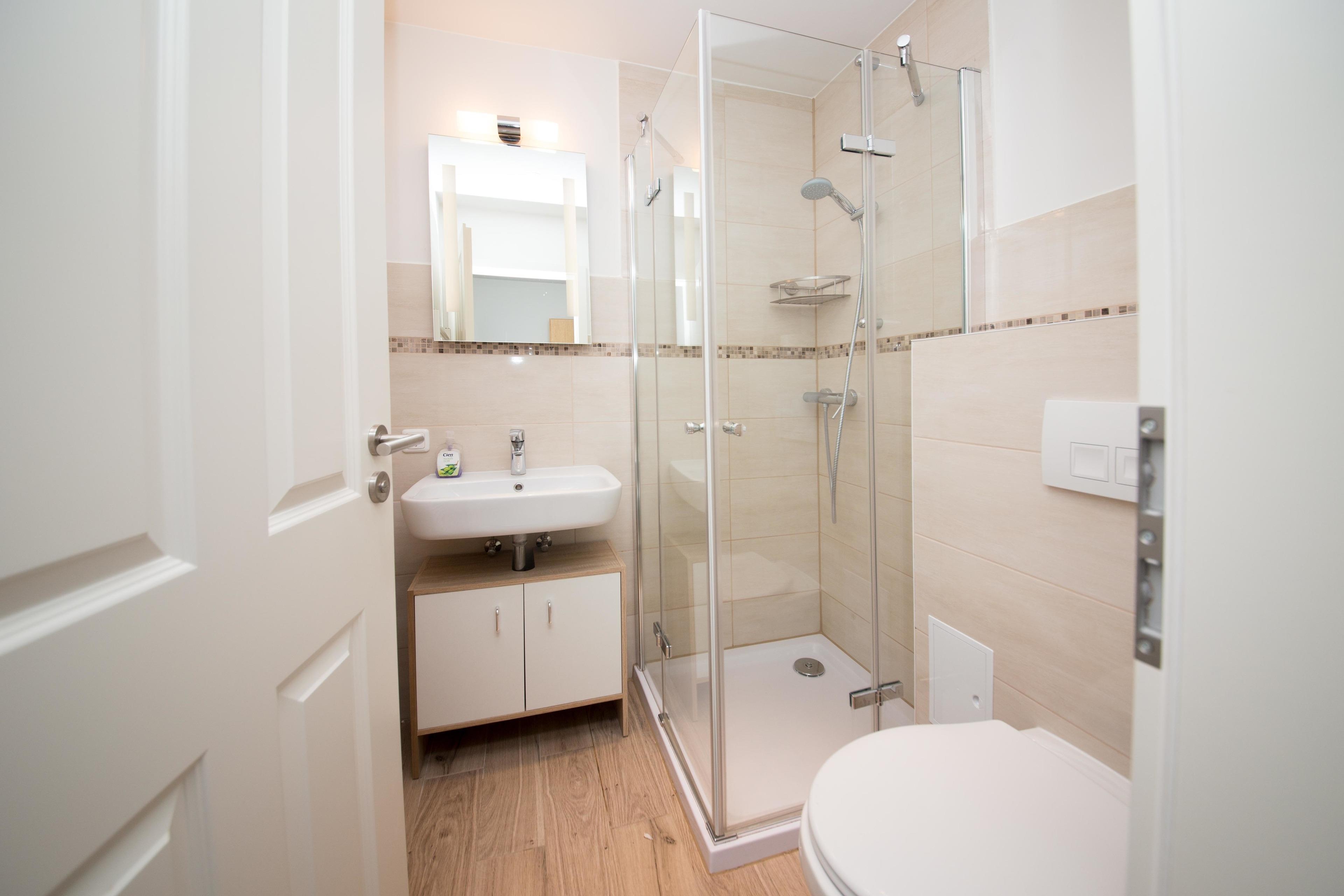 Bad und Sanitär: Duschbad und WC mit elektrischem Lüftungssystem