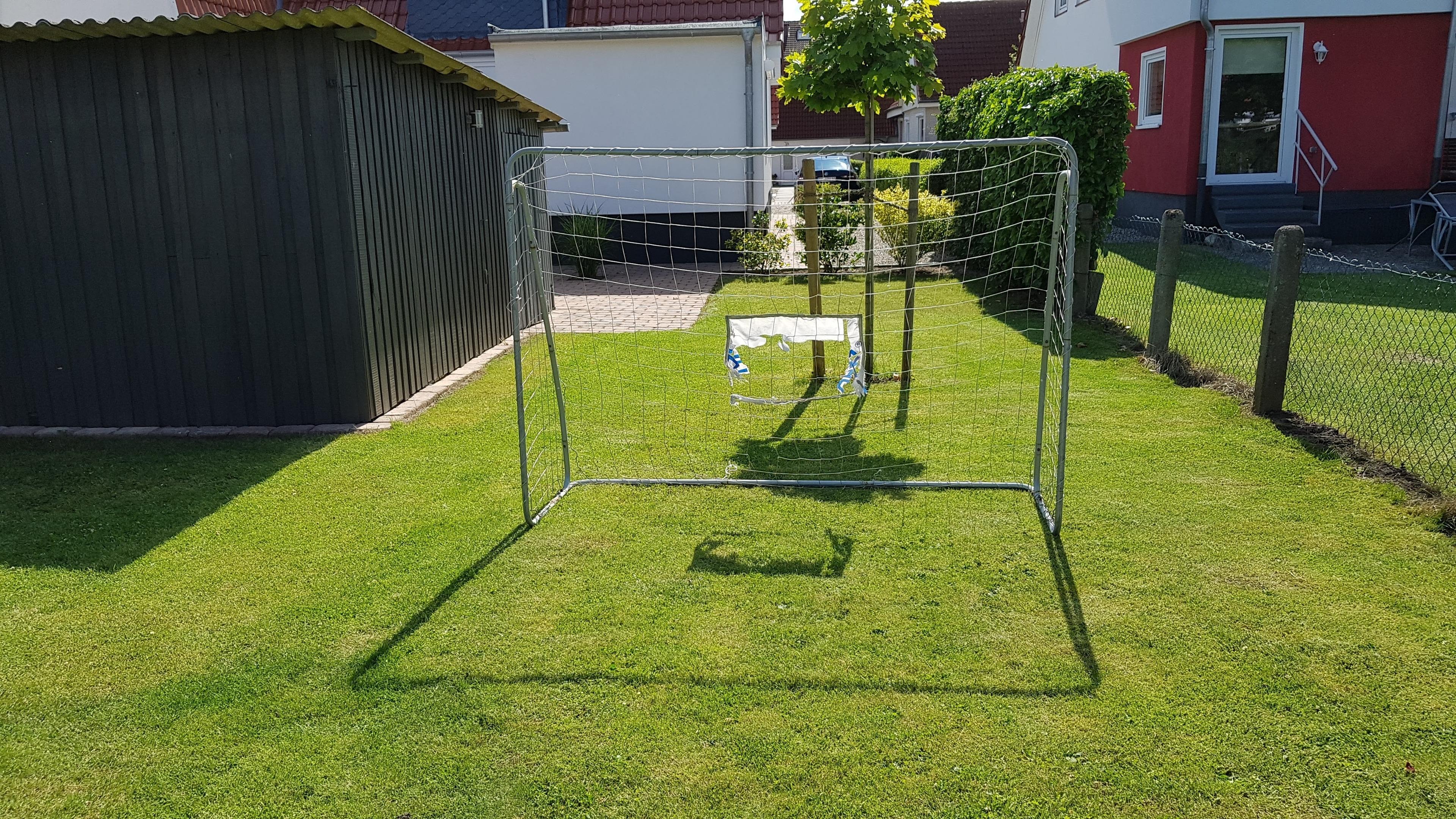 Trampolin im Gemeinschaftsgarten, Bollerwagen, Schaukel im Garten, Lego und Gesellschaftsspiele, Strand-Spielsachen, Fußballtor im Garten