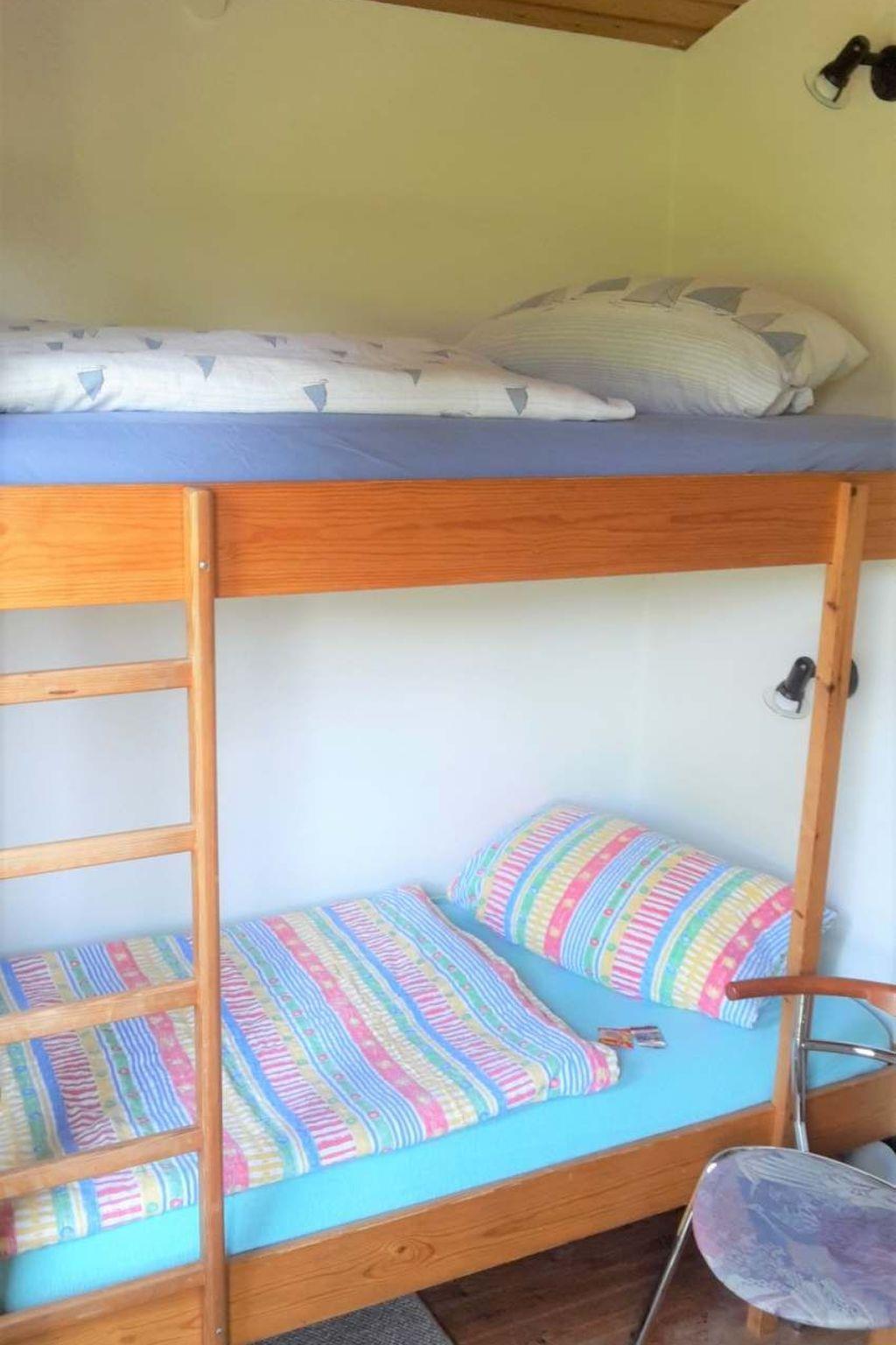 Unsere "Retro Chalets" sind gemütlich "wie bei Muttern" eingerichtet und haben ein Schlafzimmer mit gemütlichen Doppelbetten (1,4x2,0m Liegefläche) und ein Schlafzimmer mit Kinder Doppelstockbett. Ein gemütliches Wohnzimmer mit Küche und ein schnuckeliges Badezimmer mit Dusche runden Ihr Reich für Ihren Urlaub ab. Jedes Haus hat eine eigene Terrasse und Terrassenmöbel. Ihre Hund können Sie an der Leine an der Terrasse anbinden . Wir haben mehrere Baugleiche Häuser...wobei Sie sich nur nur durch die Farben der Möbel, Innen und Aussenfarben unterscheiden. Alle haben die gleiche Ausstattung. Sofern Sie ein bestimmtes Haus präferieren...fragen Sie uns einfach :)