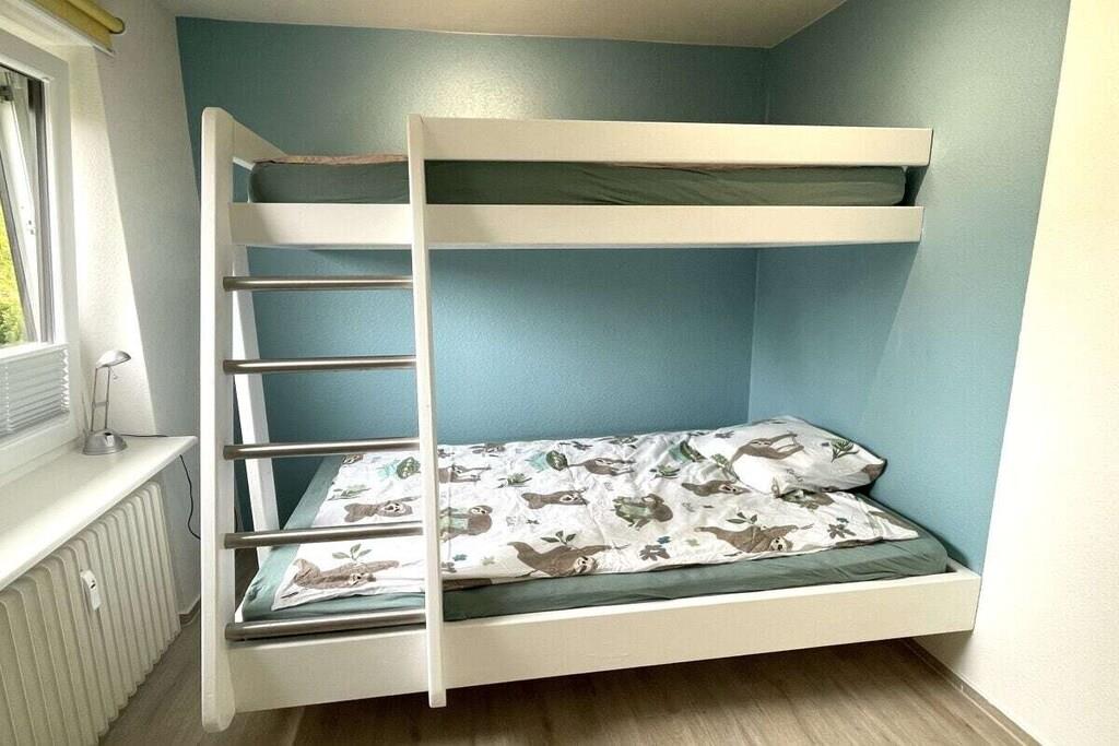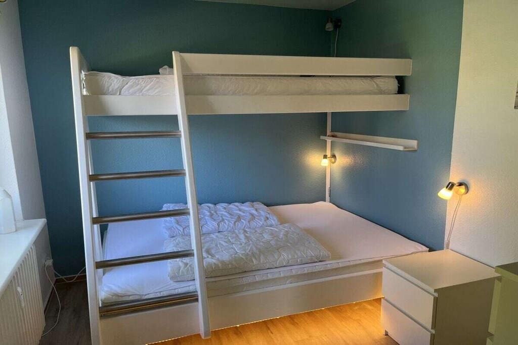 Unsere Ferienwohnung in Kellenhusen ist mit 72qm und 2,5 Zimmern perfekt ausgestattet für maximal 5 Personen. Das Elternschlafzimmer hat ein Boxspringbett (1,80×2,00m) und einen geräumigen Kleiderschrank. Das Kinderzimmer hat ein Doppelstockbett mit einer Liegefläche von 1,40×2,00m (unten) und einer Liegefläche von 1,00×2,00m (oben) und eine kleine Kommode. Beide Schlafzimmer sind mit Fliegen- bzw. Mückenschutz und Rolläden ausgestattet. Im Wohnzimmer gibt es ein gemütliches Sofa und einen 65-Zoll Fernseher sowie eine großzügige Essecke mit offener Küche. Diese bietet alles was für einen erholsamen Urlaub gebraucht wird: Kühlschrank mit Eisfach, Spülmaschine, Herd und einen kleinen Backofen, Kaffeemaschine, Wasserkocher, Toaster und Geschirr. Außerdem gibt es einen großen Balkon mit Süd-West-Ausrichtung. Im Badezimmer gibt es eine bodentiefe Dusche sowie ein WC und einen Handtuchheizkörper. Waschmaschine und Trockner stehen im Keller gegen Gebühr zur Verfügung Die Wohnung verfügt über einen PKW Stellplatz.
