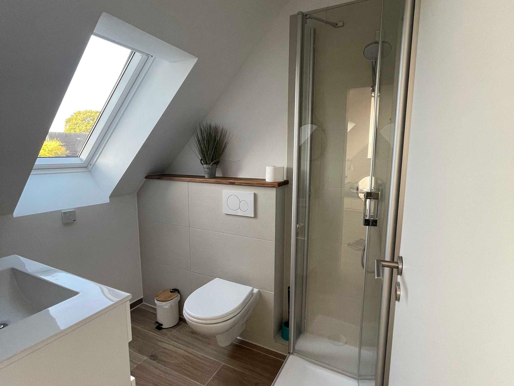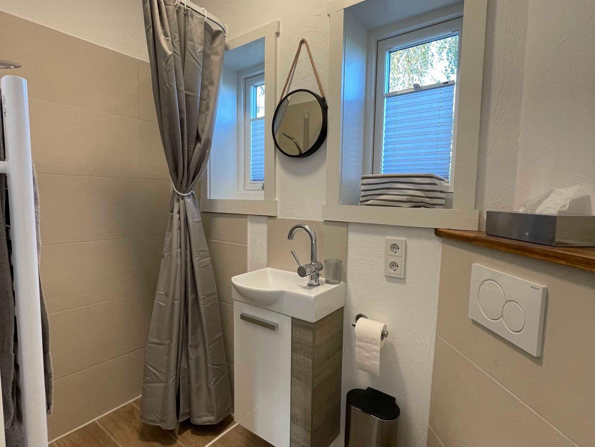 Das kleine Badezimmer hier verfügt sogar über eine Dusche.