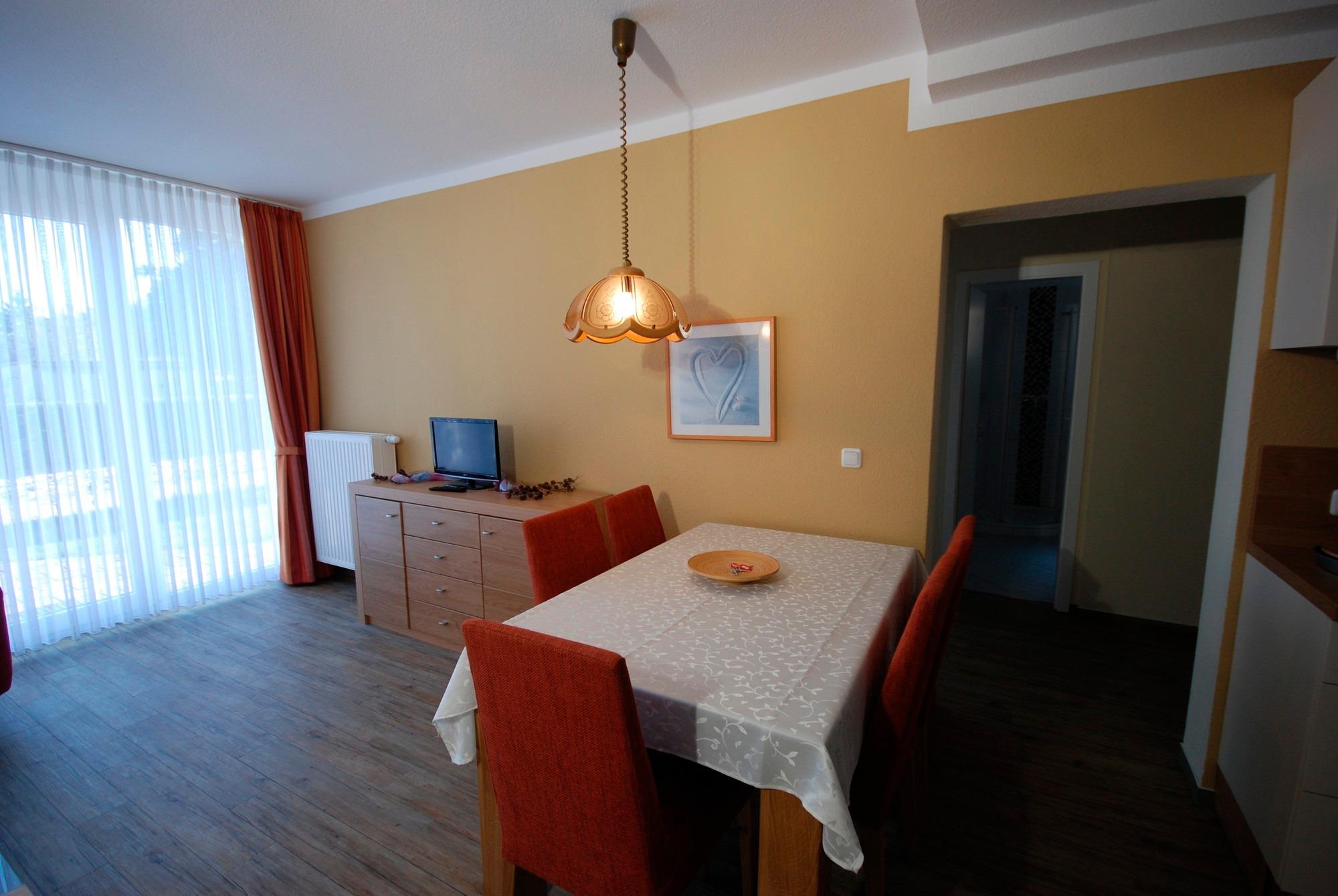 Die großzügige (72 qm) Wohnung befindet sich im Erdgeschoß vom "Haus Strandgang". Sie verfügt über eine Terrasse, ein Wohnzimmer (Esstisch, Couchgarnitur und TV), eine offene Wohnküche, drei Schlafzimmer (ein Elternschlafzimmer mit Doppelbett, ein Kinderzimmer mit zwei Einzelbetten und ein weiteres Zimmer mit einem Etagenbett) sowie ein Bad mit Dusche/WC und ein zusätzliches Gäste-WC.