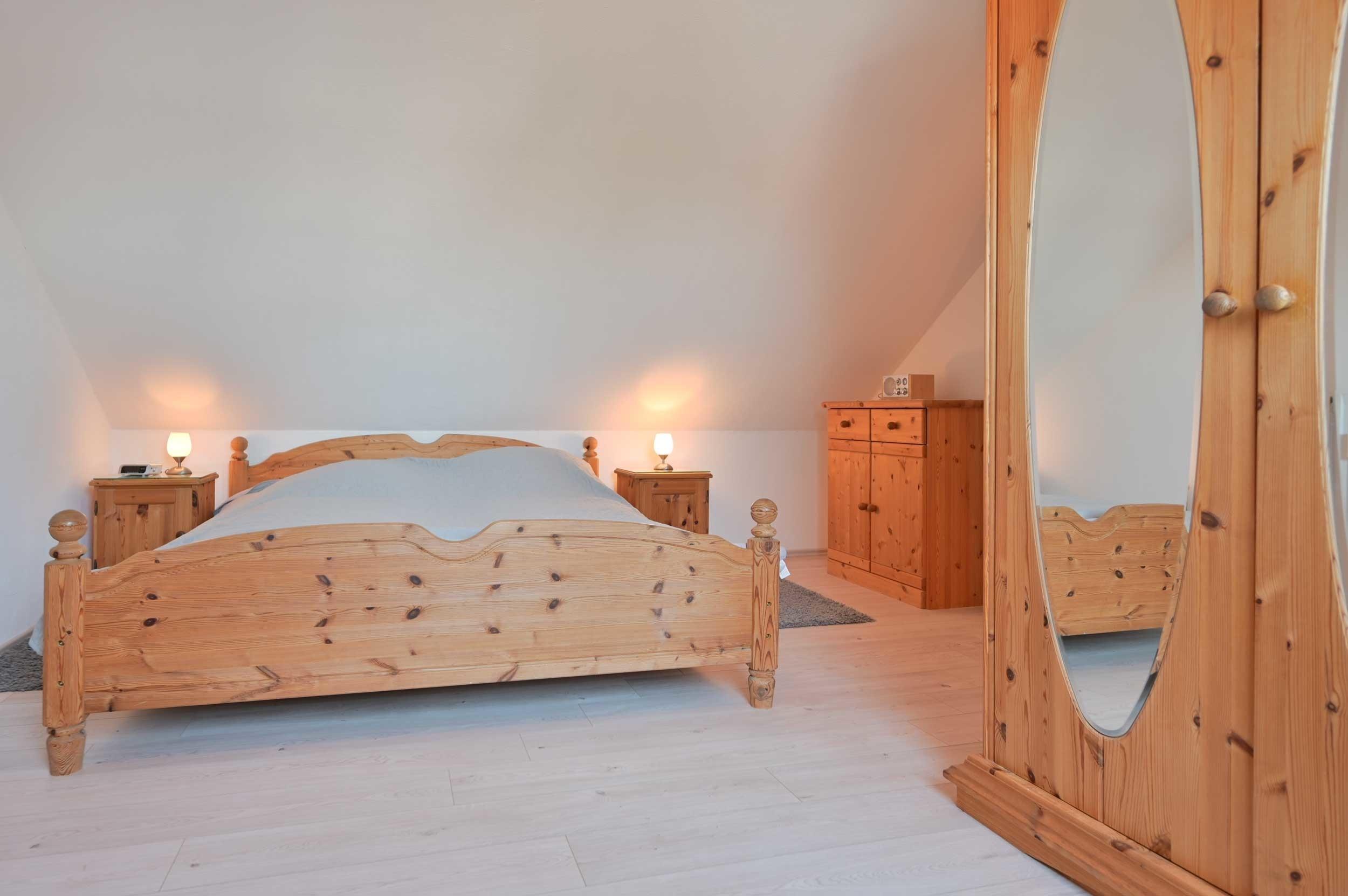 Bei der freundlichen, hellen Ferienwohnung der Familie Gronemeyer handelt es sich um ein schönes, gepflegtes Appartement, das sich über zwei Etagen erstreckt. Die Ferienwohnung verfügt über ein separates, geräumiges Schlafzimmer mit Doppelbett, Nachttischen mit Beleuchtung, großem Kleiderschrank mit Spiegeltüren und einer Recamiere.