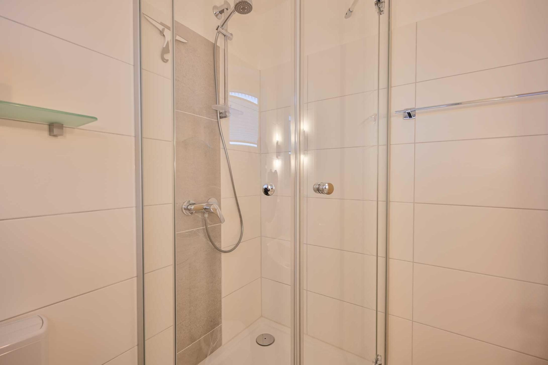 Eine separate Küchenzeile steht Gästen ebenfalls zur Verfügung wie ein hübsches Bad mit Dusche (hoher Einstieg) und WC und ein Flur mit Garderobe.