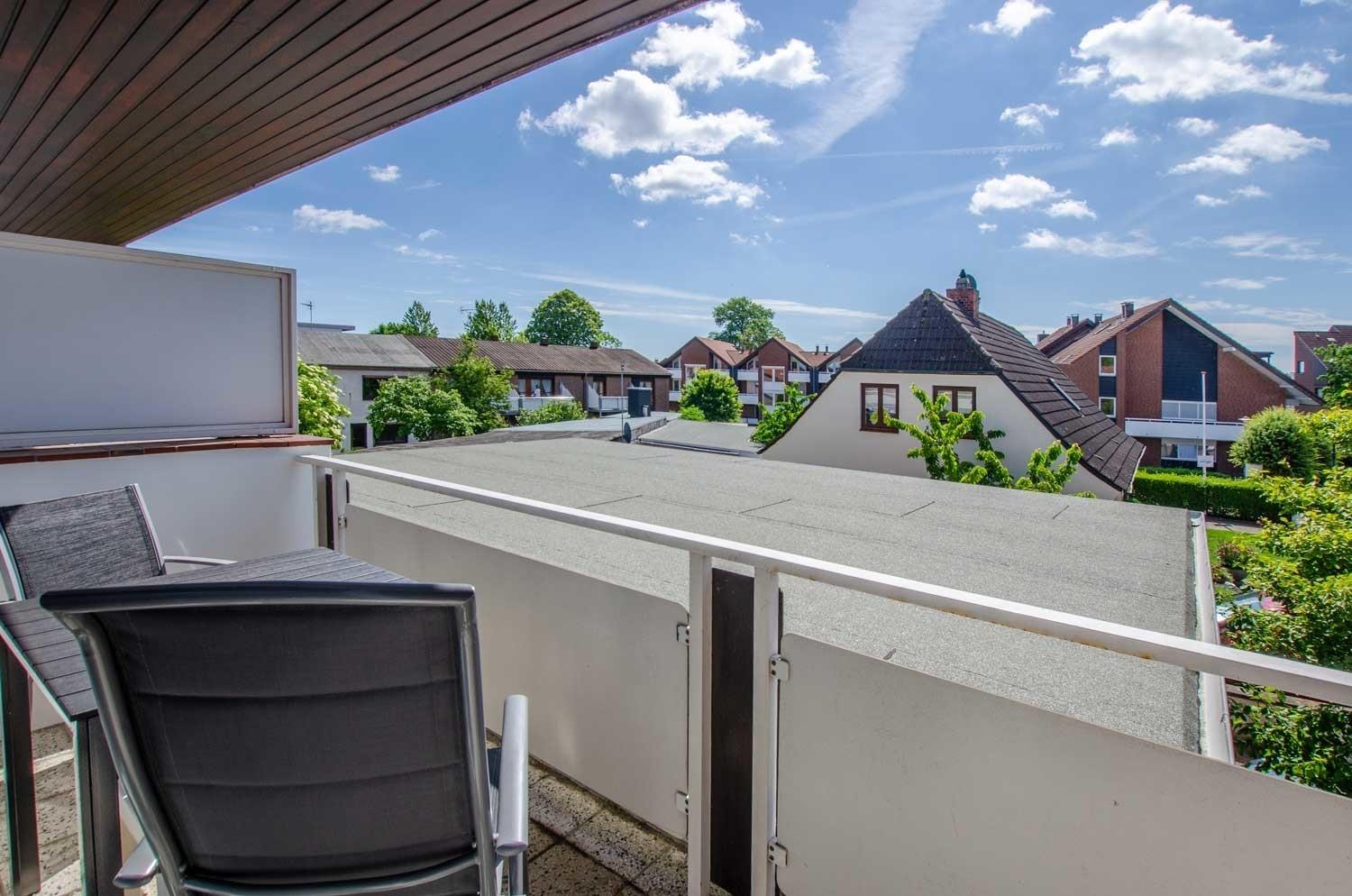 Die Ferienwohnung "Ole" verfügt über ein Wohnschlafzimmer mit Schlafsofa, einem Sessel, Couchtisch, einer Essecke mit Tisch und Stühlen, Kommode mit Schubladen und TV. Außerdem haben Gäste von hier aus Zugang zum möblierten Balkon in Richtung Ostsee.
