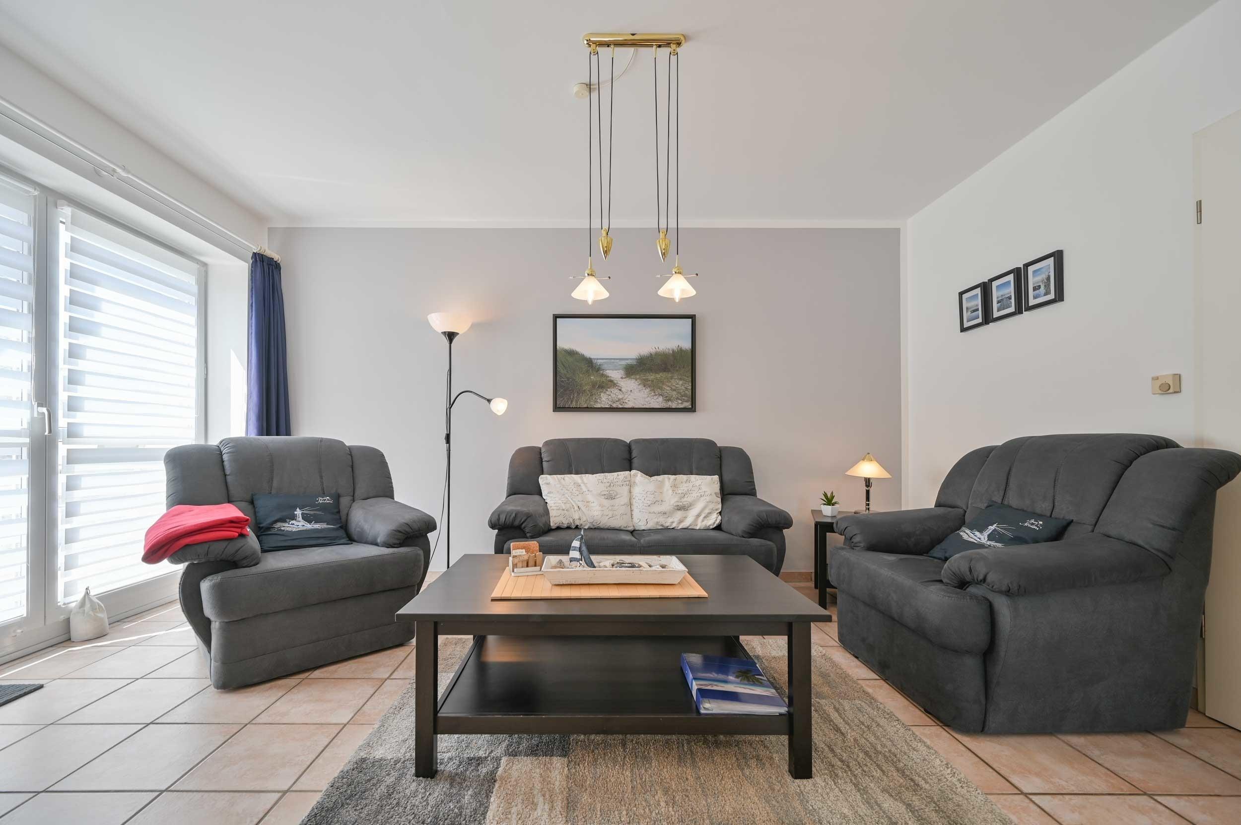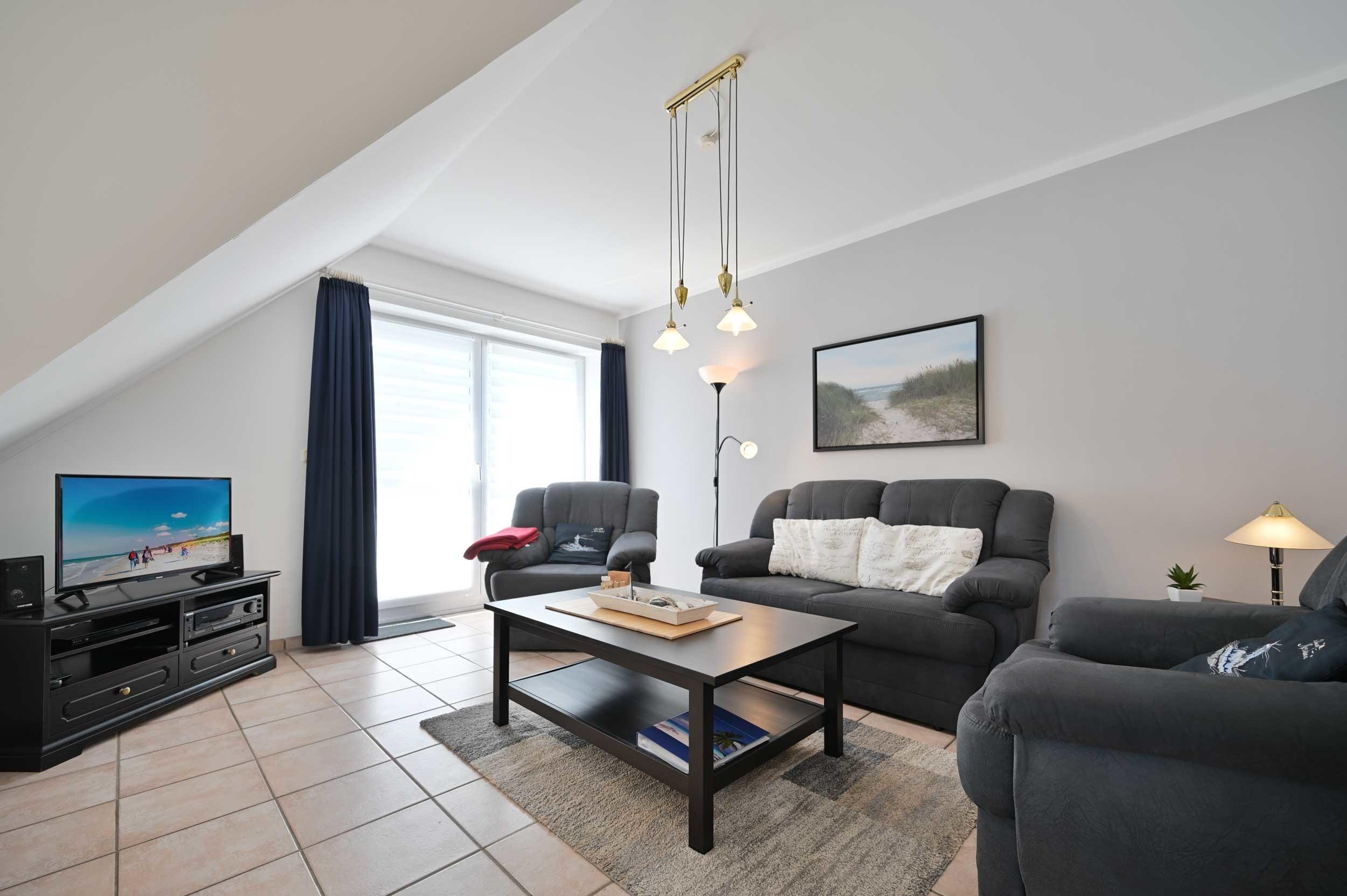 Die schöne. gepflegte Fewo von Familie Nitsch im Ostseebad Kellenhusen verfügt über ein helles, geräumiges Wohnzimmer mit Flachbild-TV, 2er Couch, 2 Sesseln, Couchtisch und Beistelltisch, Phonoschrank (Radio, Stereoanlage, CD/DVD-Player), WLAN und Zugang zum gefliesten, möblierten Balkon mit eingeschränktem Blick auf die Ostsee.