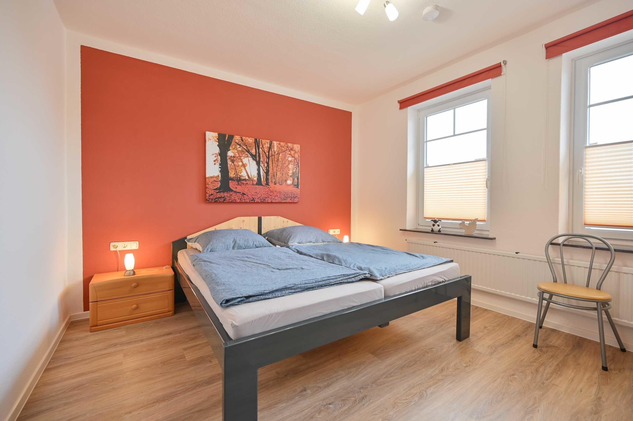 Das große Ferienhaus verfügt im Obergeschoss über 3 separate Schlafzimmer mit jeweils Doppelbetten und Kleiderschränken. Seit 2021 sind alle Schlafräume mit neuem Vinyl-Designboden ausgestattet.