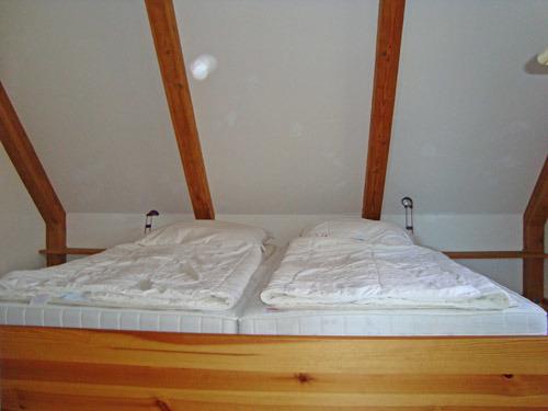 Der Spitzboden ist über eine Leitertreppe erreichbar, und ist mit zwei Einzelbetten eingerichtet.