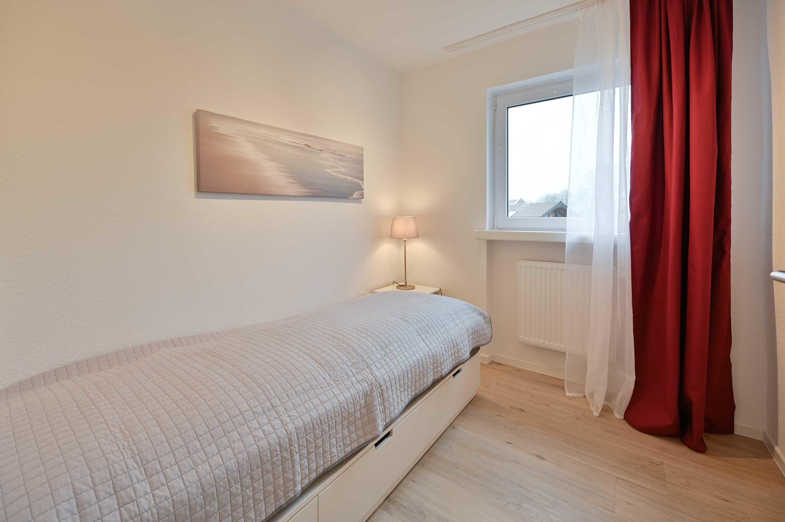 Das zweite Schlafzimmer ist mit einem Einzelbett eingerichtet.
