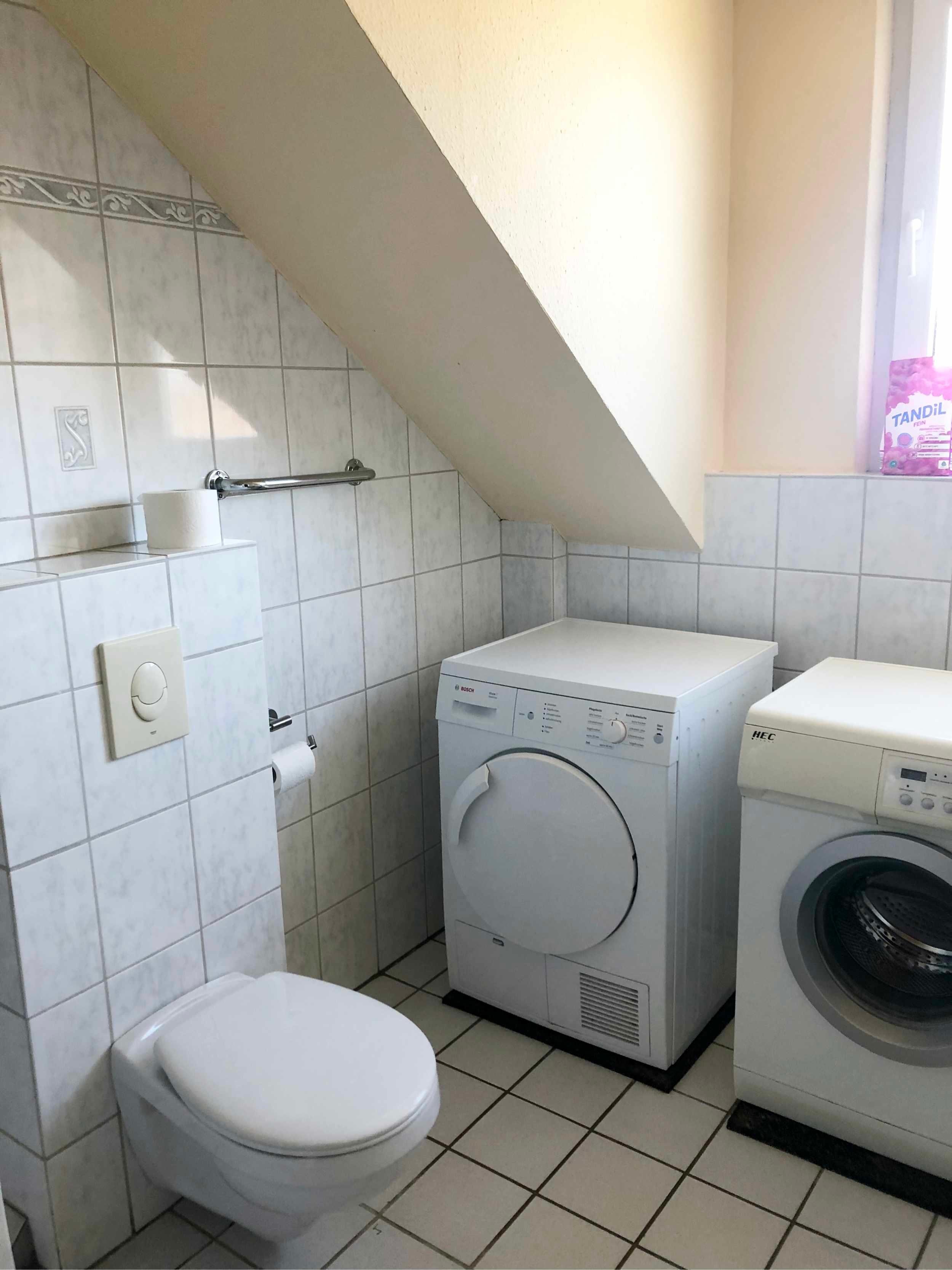 Zudem befinden sich Wasch- und Trockenmöglichkeiten im Keller des Hauses. Des Weiteren steht in der Wohnung ein Wäscheständer für nasse Strandkleidung bereit.
