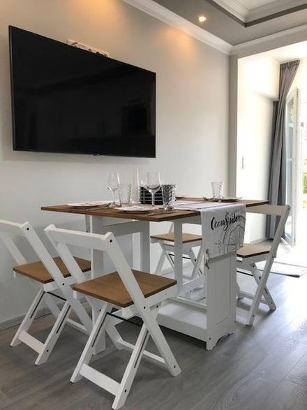 Unsere Ferienwohnung bietet Ihnen kostenloses WLan, einen 55 Zoll Flachbild TV im Wohnzimmer und 50 Zoll Flachbild TV im separaten Schlafbereich.