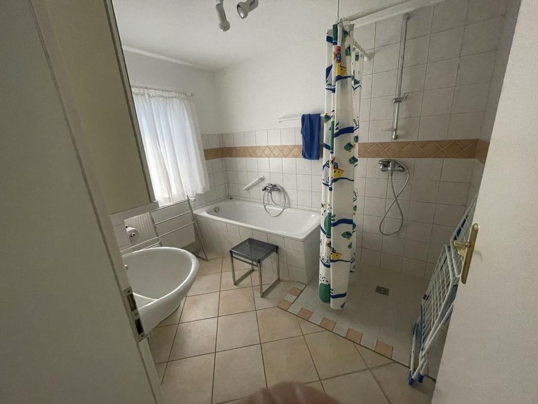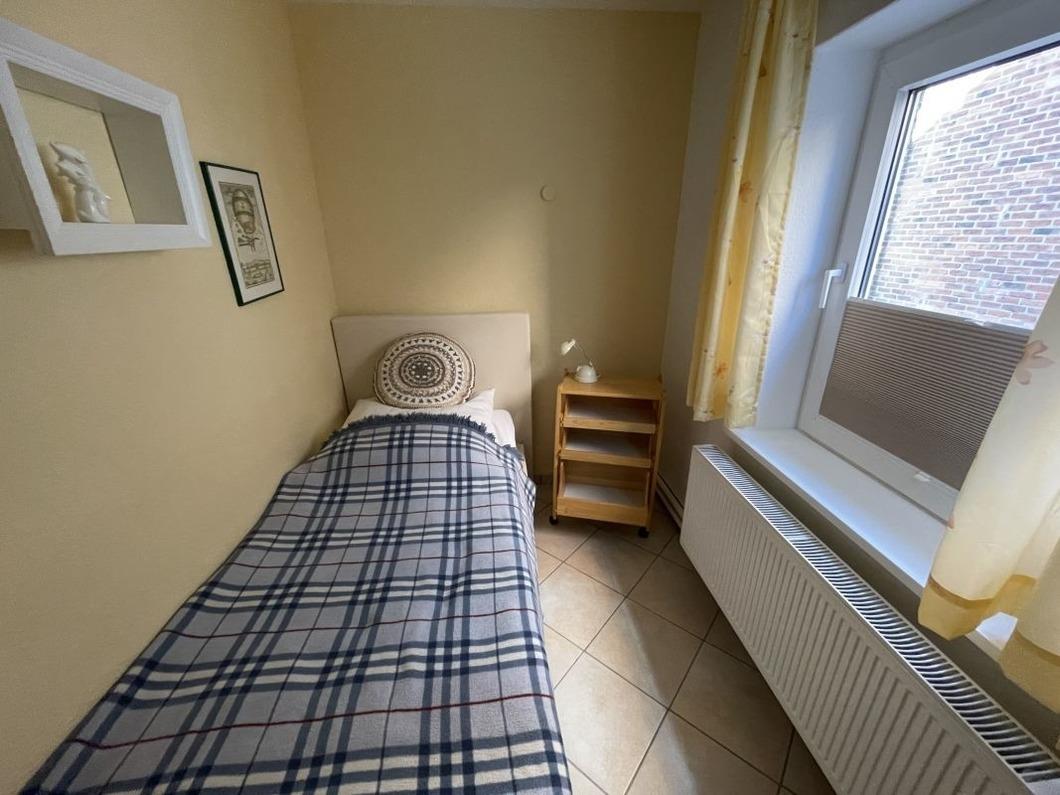 Unsere Ferienwohnung 2 befindet sich im Erdgeschoss und verfügt über ein Schlafzimmer mit Doppelbett , sowie ein weiteres kleines Schlafzimmer mit einem Einzelbett. Das großzügig geschnittene Badezimmer ist mit begehbarer Dusche und einer Badewanne ausgestattet.