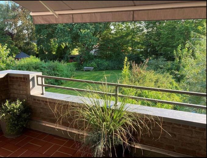 Von hier aus haben Sie Zugang auf den sonnigen Balkon mit wunderschönem Gartenblick, hier können Sie die Sonne von morgens bis in die Abendstunden hinein geniessen. Auf dem Balkon steht ein schöner grosser Esstisch mit Stühlen für Sie bereit, als Sonnenschutz dient eine Markise.