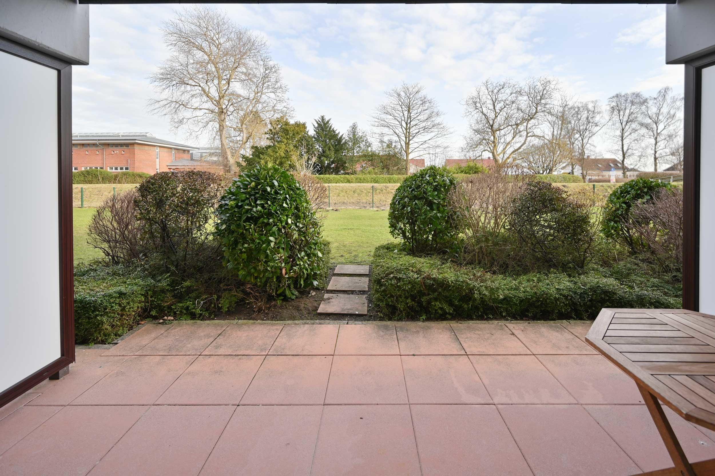 Direkt am Wohnbereich ist die Terrasse gelegen, die mit Sitzmöbeln ausgestattet ist. Da die Grünanlage hier angrenzt, können Sie hier entspannte Momente erleben.