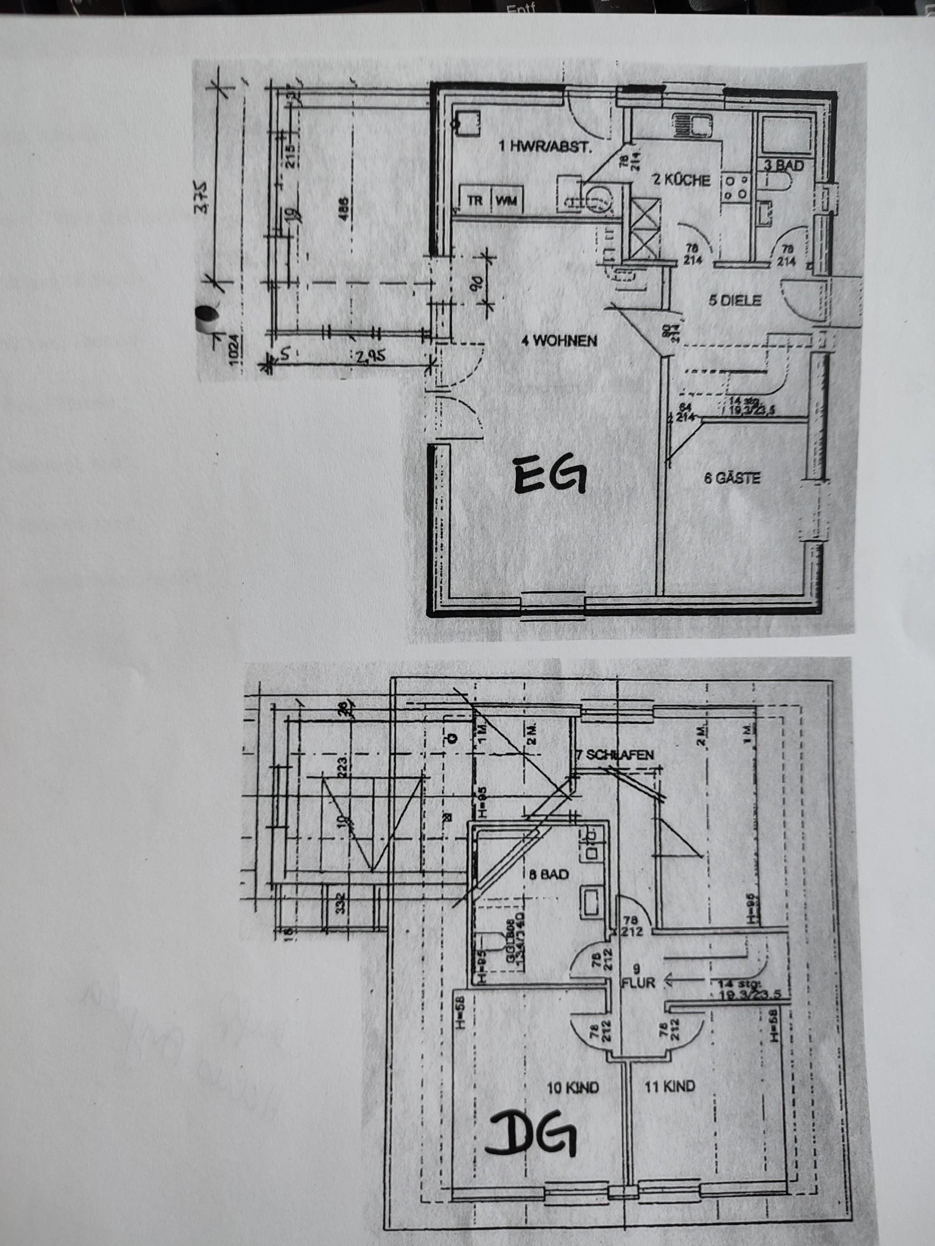 Weiterhin befindet sich im EG 1 Schlafraum mit einem 1,80 x 2,00 m Doppelbett und ein Gäste-WC mit Dusche.