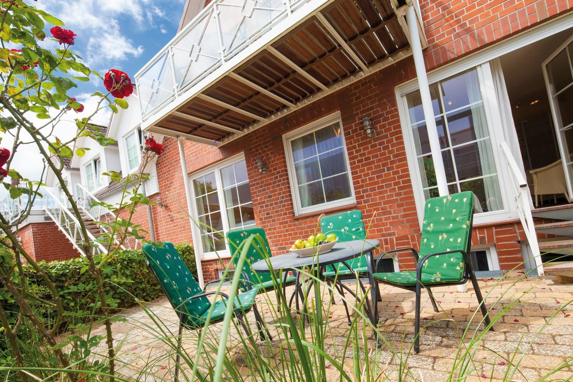 Eine große, nur dieser Ferienwohnung zugehörige Terrasse, rundet das Bild für einen perfekten, strandnahen Urlaub ab.