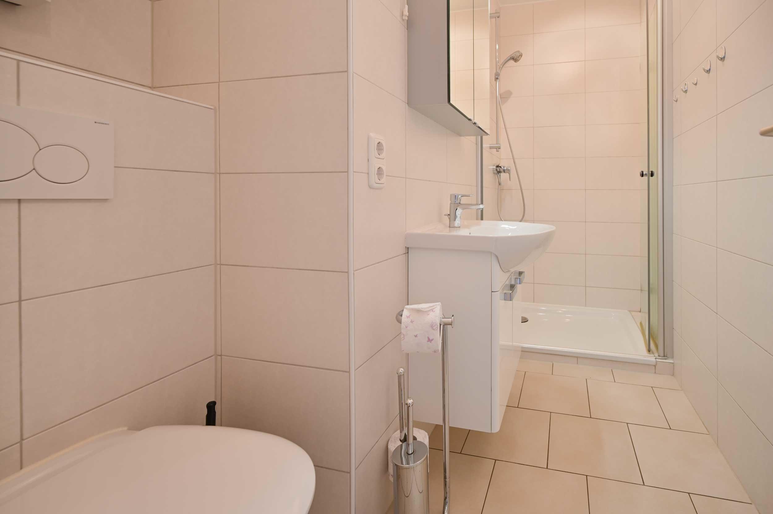 Ebenfalls bietet Ihnen die Wohnung ein separates Schlafzimmer. Dieses ist mit zwei getrennt stehenden Betten und einem Kleiderschrank möbeliert.