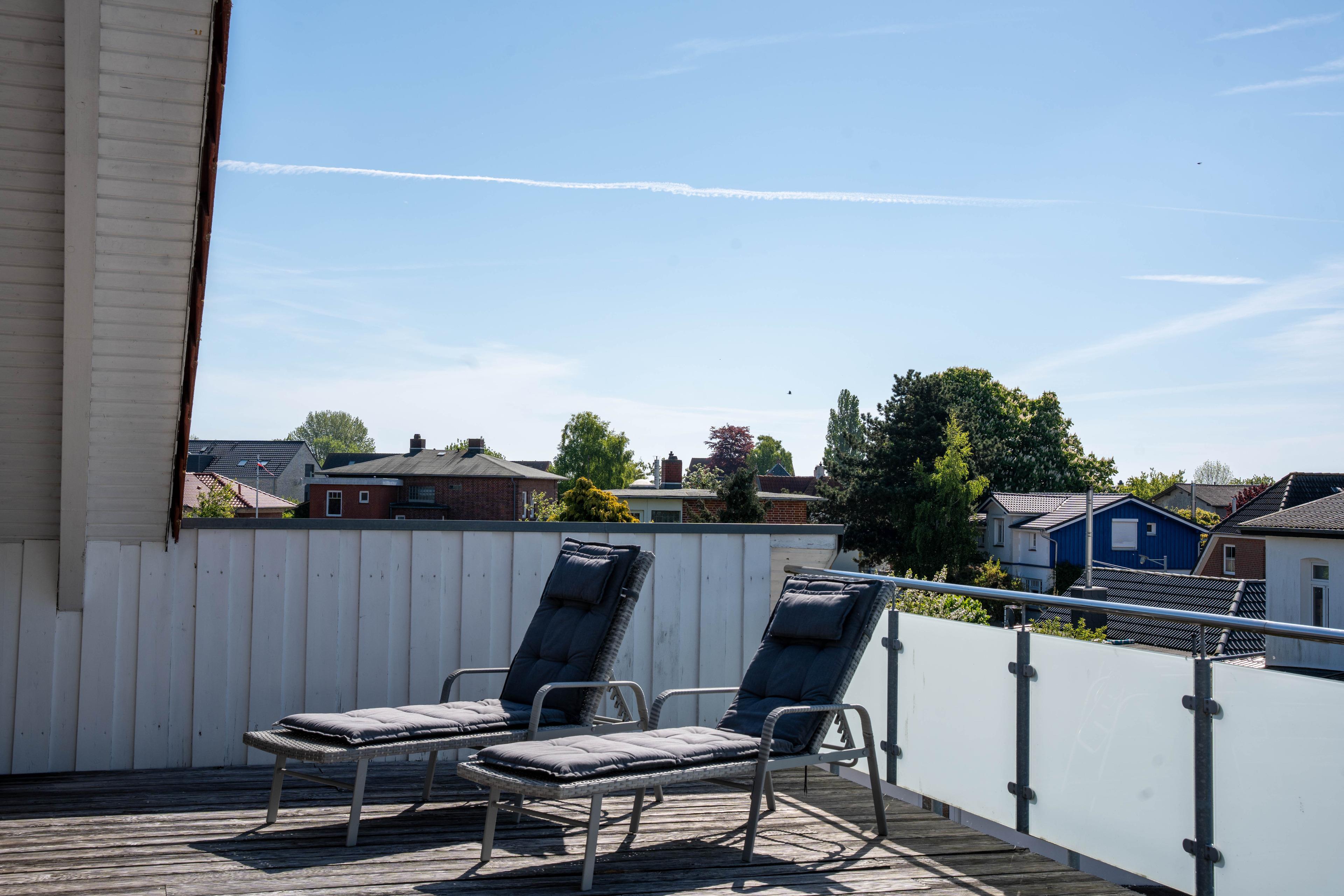 Die große möblierte Dachterrasse läd zu gemütlichen und erholsamen Stunden direkt an Ihrem Ferienobjekt ein....