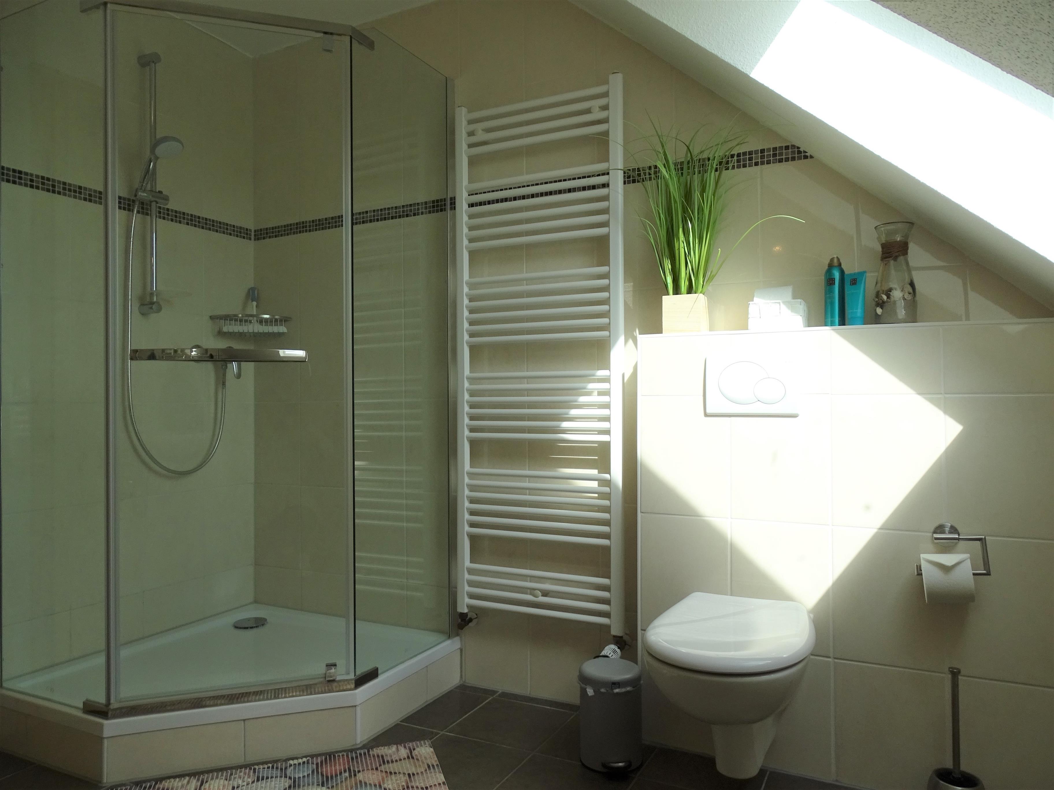 Es steht Ihnen einerseits ein gemeinsames Badezimmer mit Dusche/WC und ein weiteres Duschbad (direkt von einem der 3 Schlafzimmer aus begehbar) zur Verfügung.